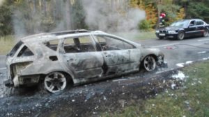 W dniu dzisiejszym (19.10.2017) ok godziny 14 doszło do pożaru samochodu osobowego Peugeot 407 na południowej obwodnicy Piły, odcinek drogi Piła-Kaczory.