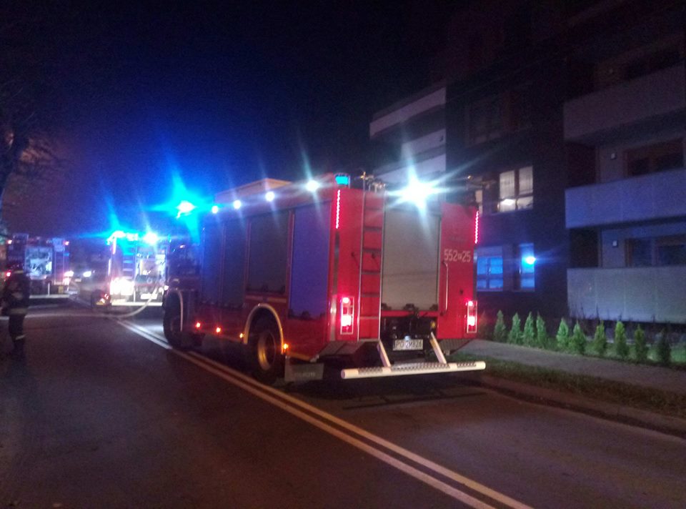 Źródło ognia zlokalizowano w piwnicy. Na klatkach schodowych jest silne zadymienie.