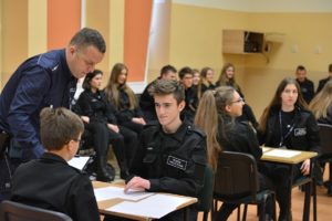 22 listopada br. w sali konferencyjnej Zespołu Szkół Ponadgimnazjalnych nr 2 w Pile z uczniami z klas pierwszych o profilu policyjnym odbyły się warsztaty kryminalistyczne, które prowadził Komendant Powiatowy Policji w Pile mł. insp. Sebastian Cichocki oraz technik kryminalistyki z pilskiej komendy asp. Jakub Franc. W przedsięwzięciu udział wziął dyrektor szkoły Pan Piotr Halama oraz koordynator klas policyjnych Pan Roman Powolny, który z mundurem również był związany przez ponad 30 lat.