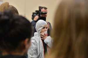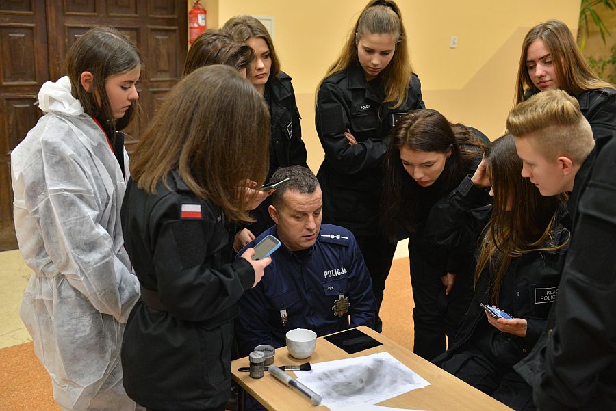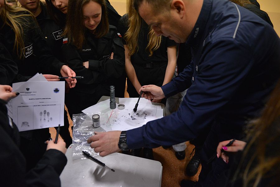 Prowadzący wprowadzili zebraną młodzież w tajemniczy świat kryminalistyki. Uczniowie obejrzeli jak wygląda walizka technika kryminalistyki i ukryte w niej nietypowe narzędzia oraz proszki, które są niezbędne w wykonywaniu czynności na miejscu przestępstwa. Najwięcej emocji wzbudziło „ściąganie” odbitek linii papilarnych z różnych powierzchni za pomocą specjalnych proszków daktyloskopijnych i ich ujawnianie za pomocą latarek ze światłem ultrafioletowym. Uczniowie również tworzyli własne karty z odbitkami palców oraz analizowali ślady linii papilarnych za pomocą lupy. Przez chwilę uczniowie poczuli się, jakby rzeczywiście pracowali na miejscu zbrodni.