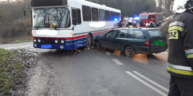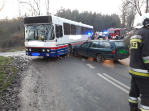 Dzisiaj (29.11.2017) okolo godziny 15 doszło do wypadku samochodu osobowego z autobusem na drodze powiatowej w Krostkowie gm. Białośliwie.