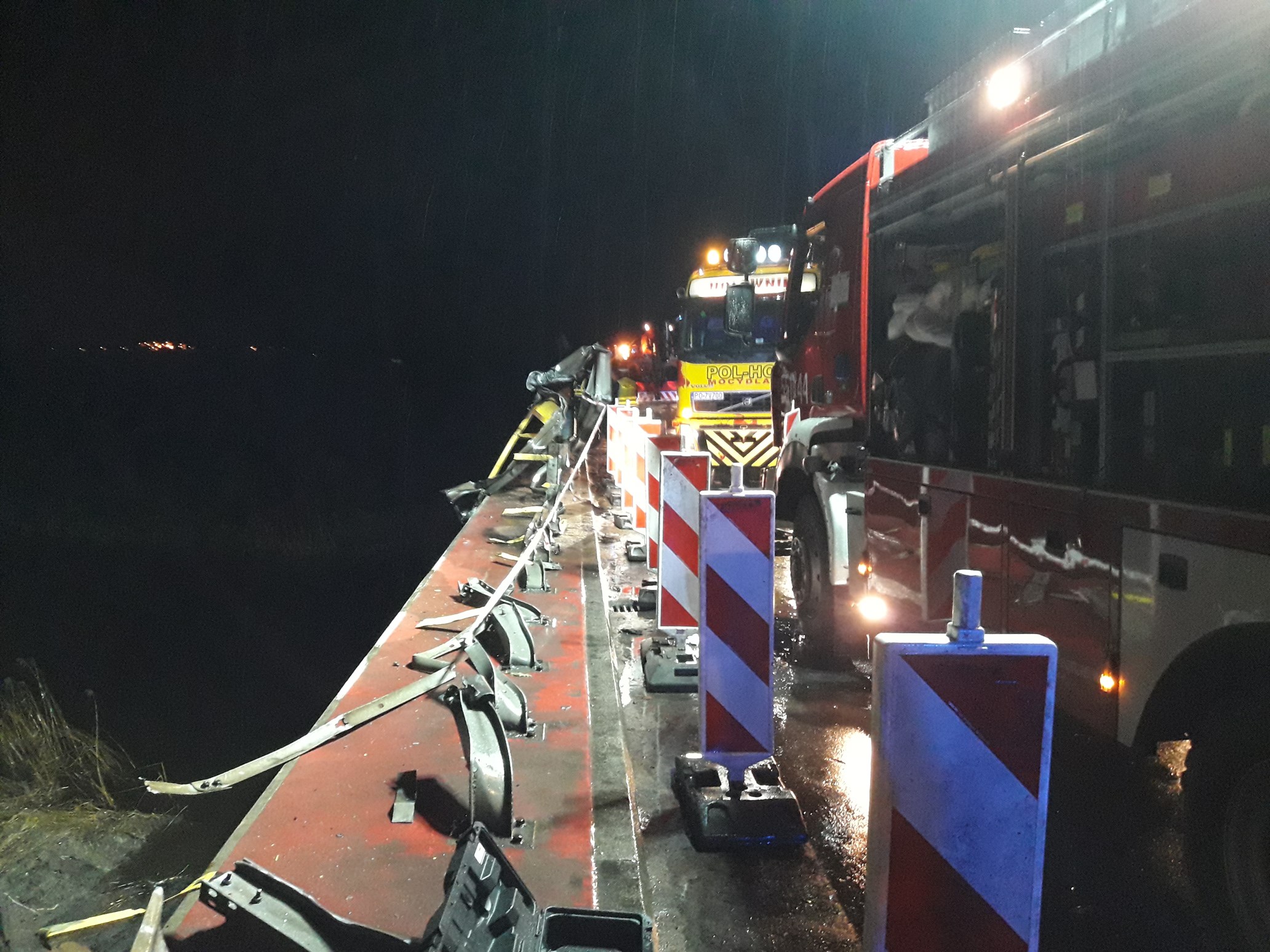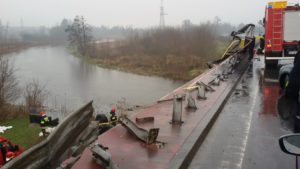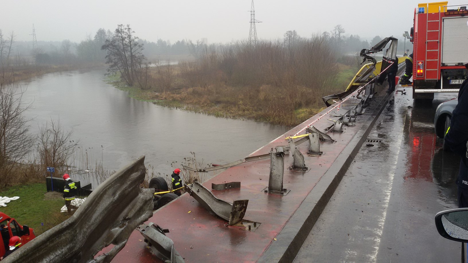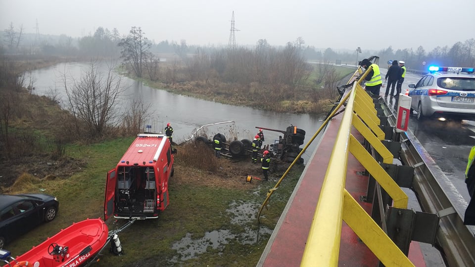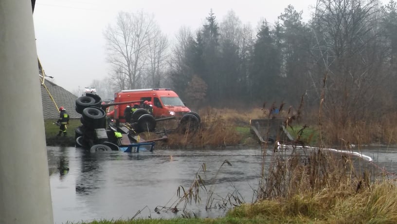 Przed godziną 21:00 zakończyła się akcja wyciągania samochodu ciężarowego z rzeki po czym wznowiono ruch na DK11.