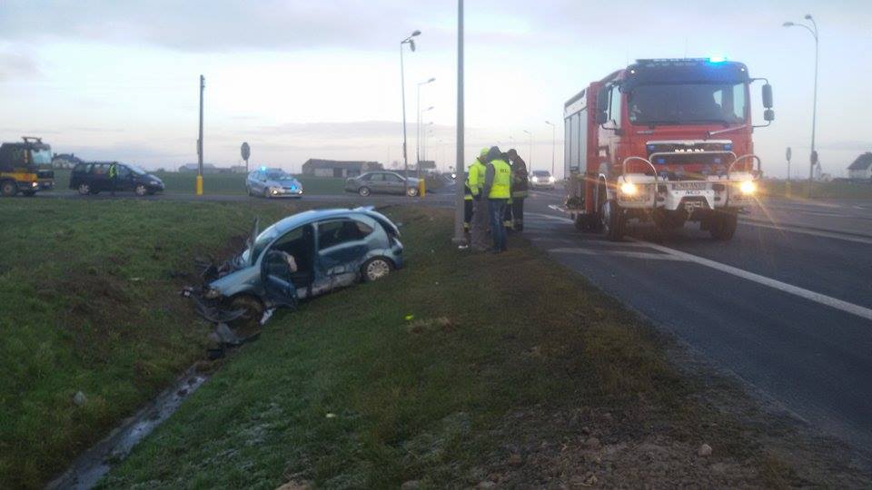Doszło do zderzenia dwóch samochodów osobowych, w których łącznie podróżowały trzy osoby. Dwie osoby z citroena, zostały przewiezione do szpitala. Kierowca z urazem głowy po badaniach opuścił już szpital. Pasażerka citroena nadal w nim przebywa, lecz obrażenia nie zagrażają jej życiu.