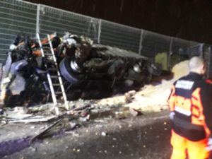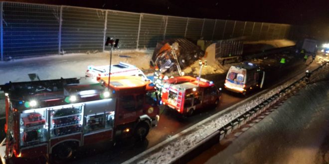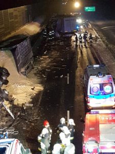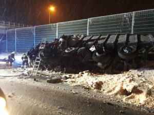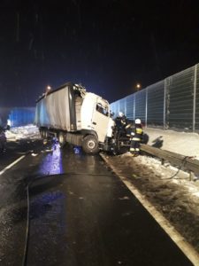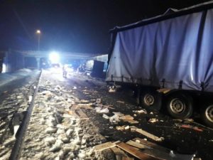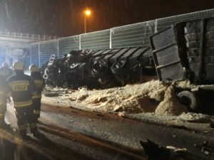 W dniu dzisiejszym około godziny 22:20 na obwodnicy Wyrzyska doszło do wypadku drogowego z udziałem dwóch samochodów ciężarowych.