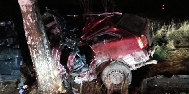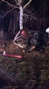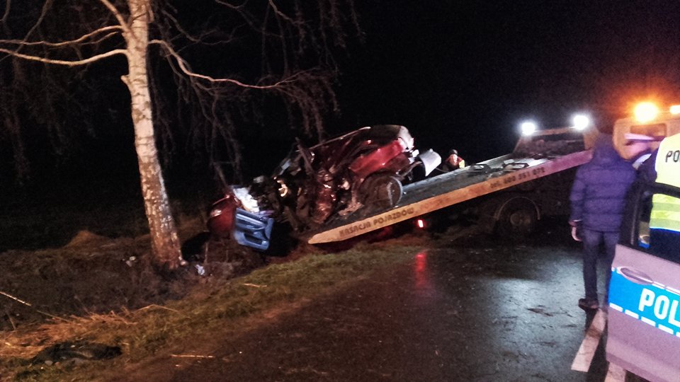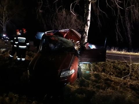 Z nieustalonych dotąd przyczyn poruszające się drogą auto zjechało z jezdni i uderzyło w drzewo.