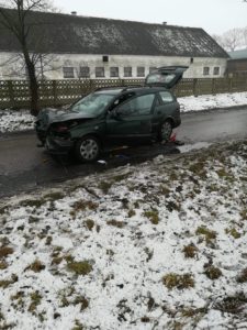 W dniu wczorajszym po opadach śniegu pojawiły się cięższe warunki drogowe. Na terenie naszego powiatu doszło do dwóch groźniejszych zdarzeń drogowych – kolizji oraz wypadku.
