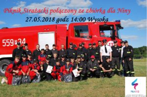 W ostatnią niedzielę maja (27.05.2018) w Wysokiej odbędzie się piknik strażacki połączony ze zbiórką na leczenie Niny, podopieczną jednego z miejscowych strażaków. Cały piknik zorganizowany będzie na terenie miejscowej parafii w Wysokiej.
