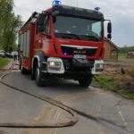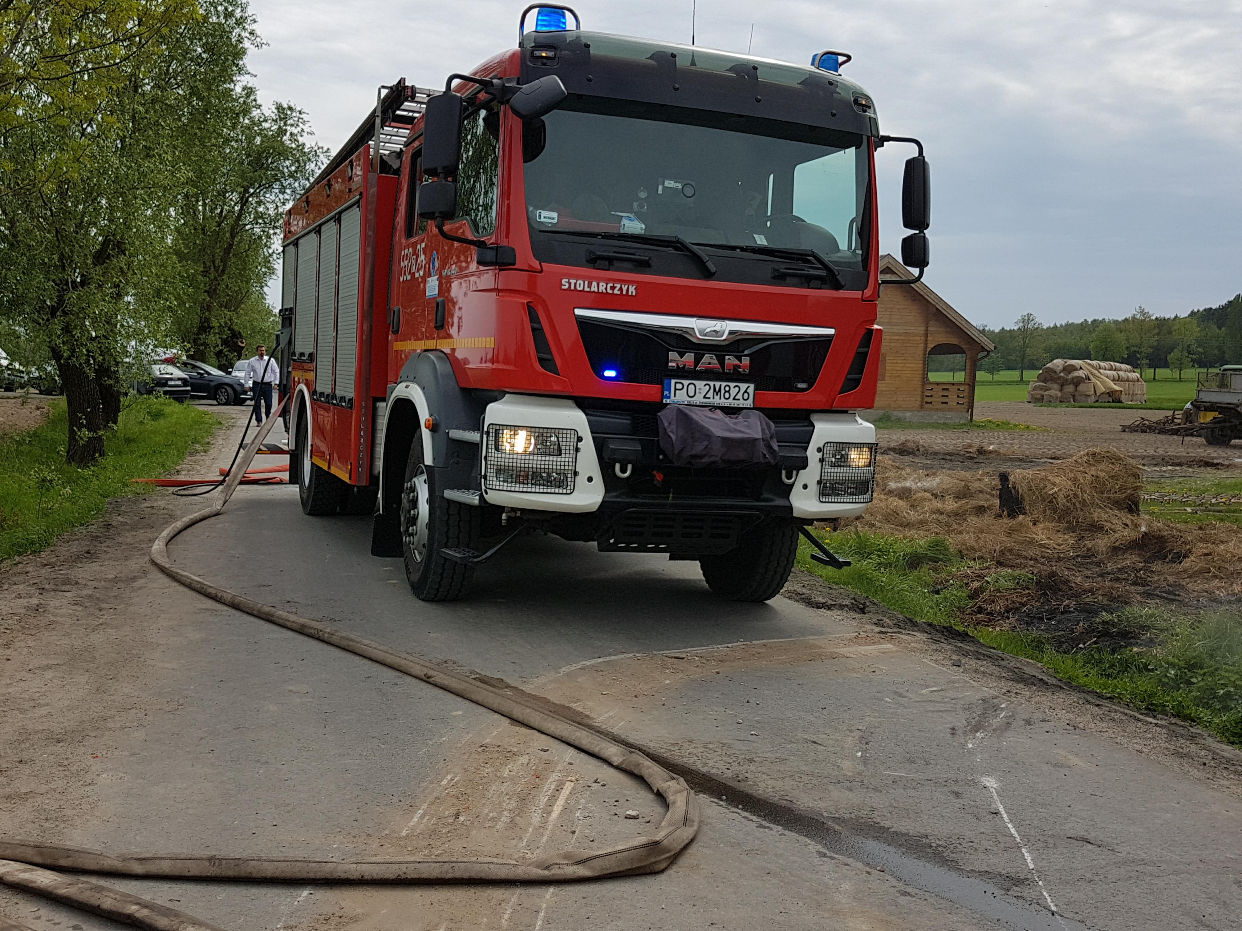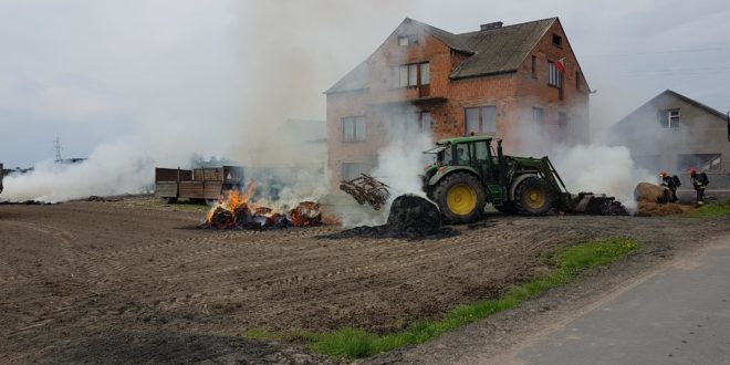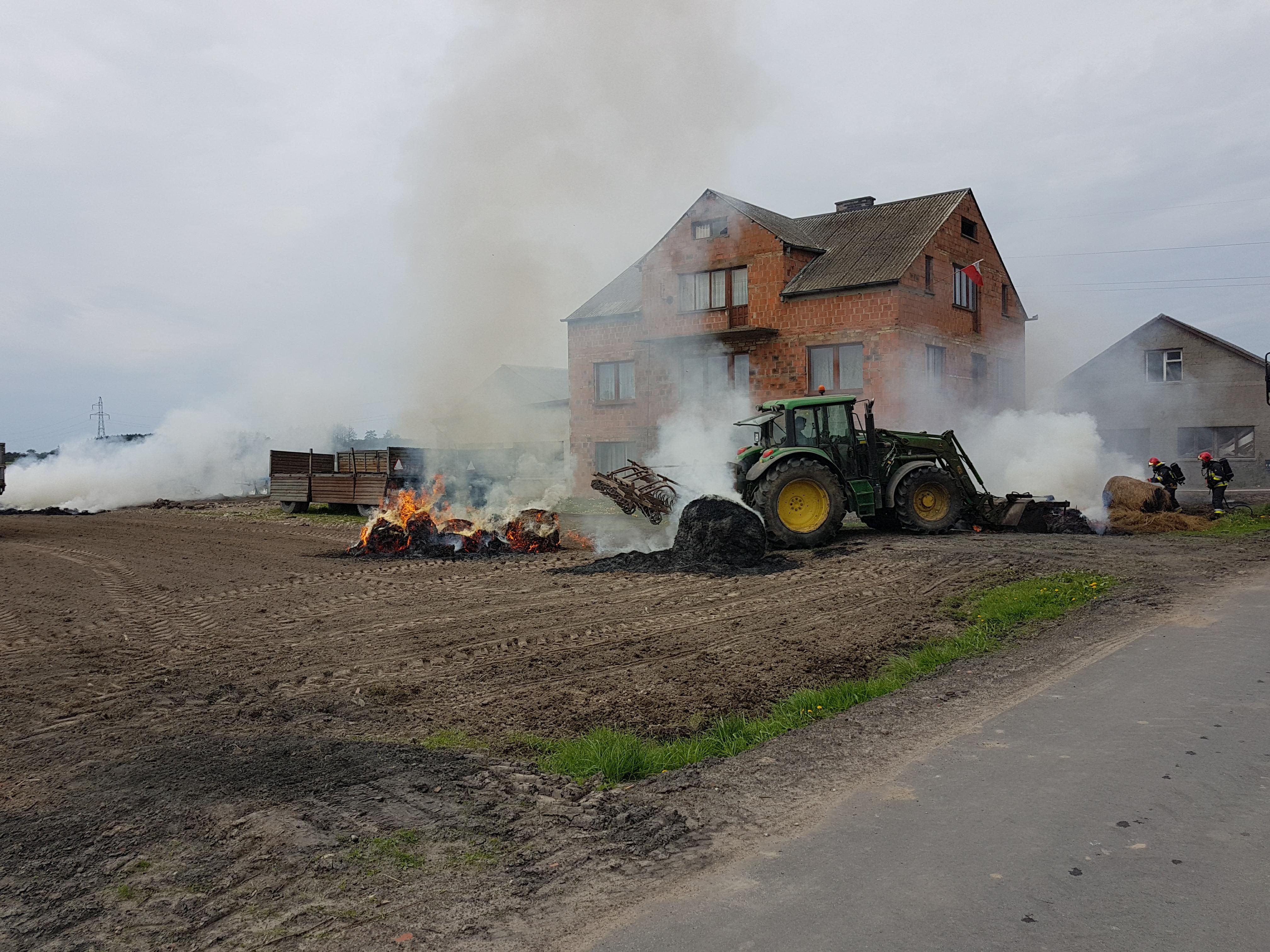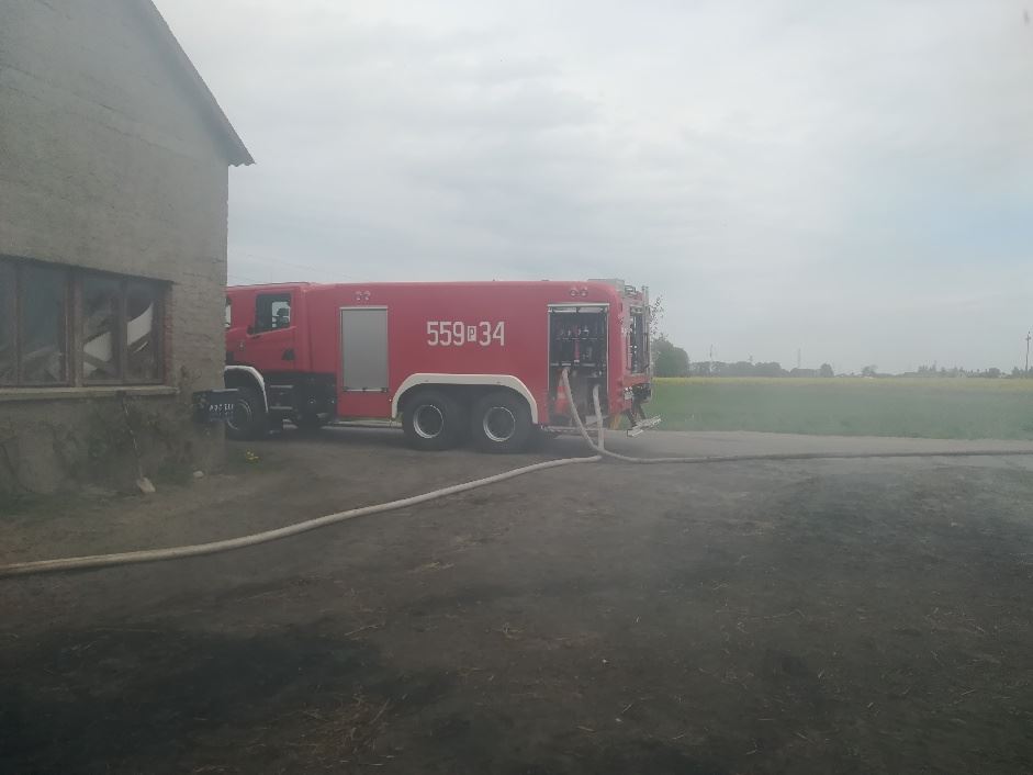 Po dojechaniu na miejsce zdarzenia pierwszych jednostek ustalono, iż doszło do pożaru stodoły wypełnionej balotami słomy, a w sąsiedztwie znajduje się zagrożony budynek. Natychmiast przybyłe na miejsce zdarzenia zastępy przystąpiły zarówno do obrony zagrożonego budynku i jednocześnie natarcia na palący się obiekt. Po opanowaniu sytuacji, przystąpiono przy pomocy gospodarza do wyciąganiu balotów słomy na zewnątrz oraz do ich gaszenia. Działania na miejsce trwały około 3 godziny.