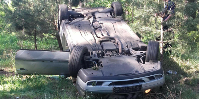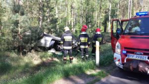 Kierujący samochodem osobowym na łuku drogi wypad z pasa ruchu po czym dachował.