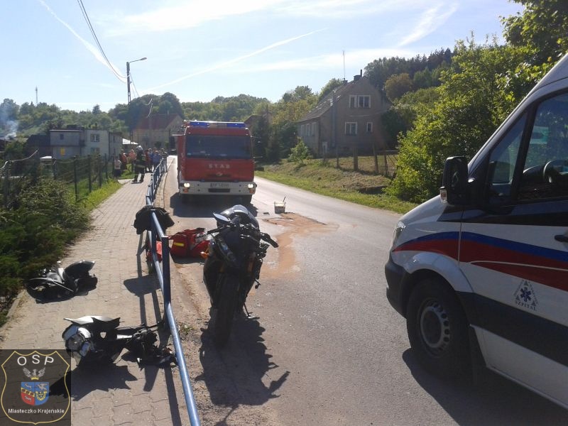 W wyniku zdarzenia motocyklista został przetransportowany przez ZRM do Szpitala Specjalistycznego w Pile.