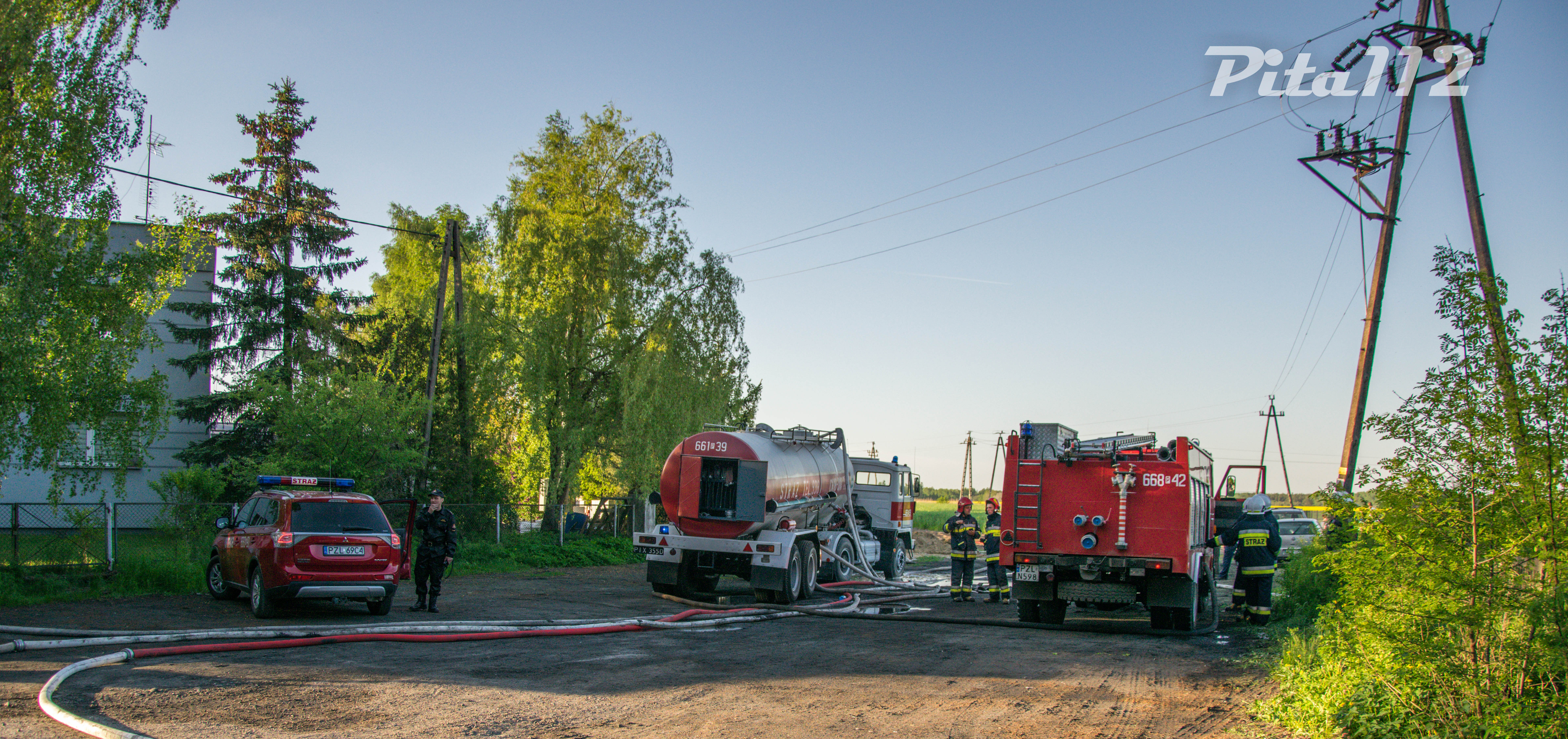 Utworzono odcinki wodne, buforowano wodę motopompami z jeziora do zbiorników małych a następnie do aut gaśniczych które wykonywały przejazd z fabryki w kierunku jeziora w Zakrzewie oraz przy samym jeziorze auta zasilane w wodę były przez pompy pływające.