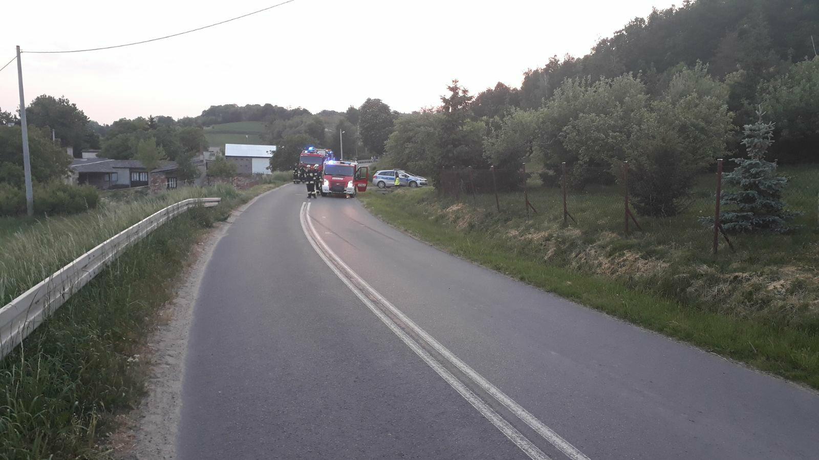 Prawdopodobnie w wyniku niedostosowania prędkości motocyklista na łuku wypadł z drogi i uderzył w przydrożny mur. W wyniku zderzenia 20-latek poniósł śmierć na miejscu.