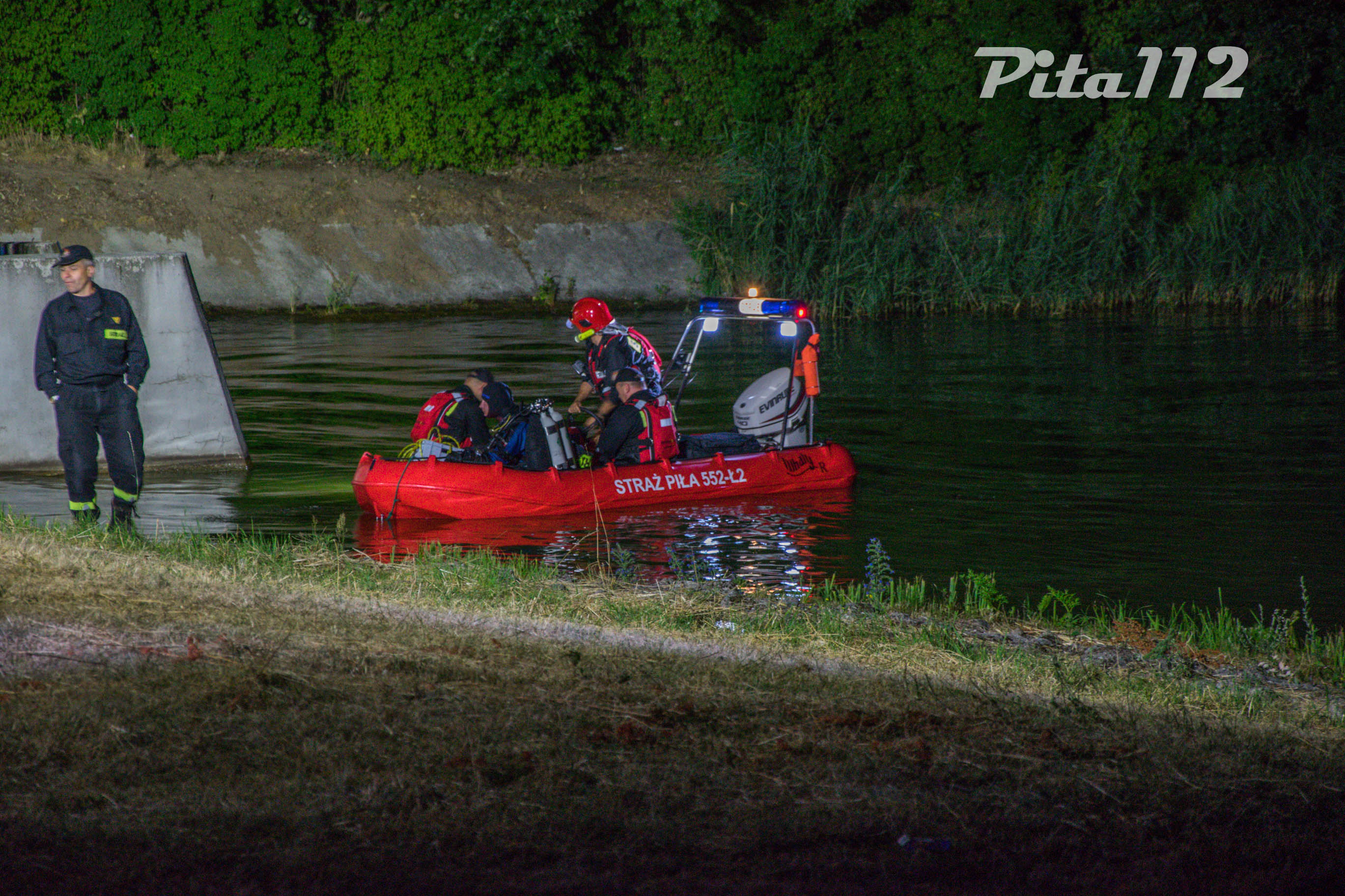 Przybyłe na miejsce zdarzenia służby, ustaliły iż doszło do przewrócenia się łódki z trzema osobami na pokładzie. Jedna z osób zdołała dopłynąć do brzegu, natomiast dwie osoby znajdują się w wodzie. Na miejsce zadysponowano Służby Ratunkowe w tym Specjalistyczną Grupę Ratownictwa Wodno – Nurkowego z Piły oraz Poznania, a także OSP RW Piła.