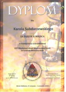 Funkcjonariusz pilskiej komendy PSP st. sekc. SUBDARZEWSKI KAROL wywalczył 2 miejsce w klasyfikacji indywidualnej i tym samym zdobył tytuł Międzynarodowego Wicemistrza Polski Strażaków Płetwonurków. Sukces tym większy, że ten zawodnik obronił tytuł Wicemistrza, wywalczony na poprzednich Mistrzostwach Polski w 2016 roku.