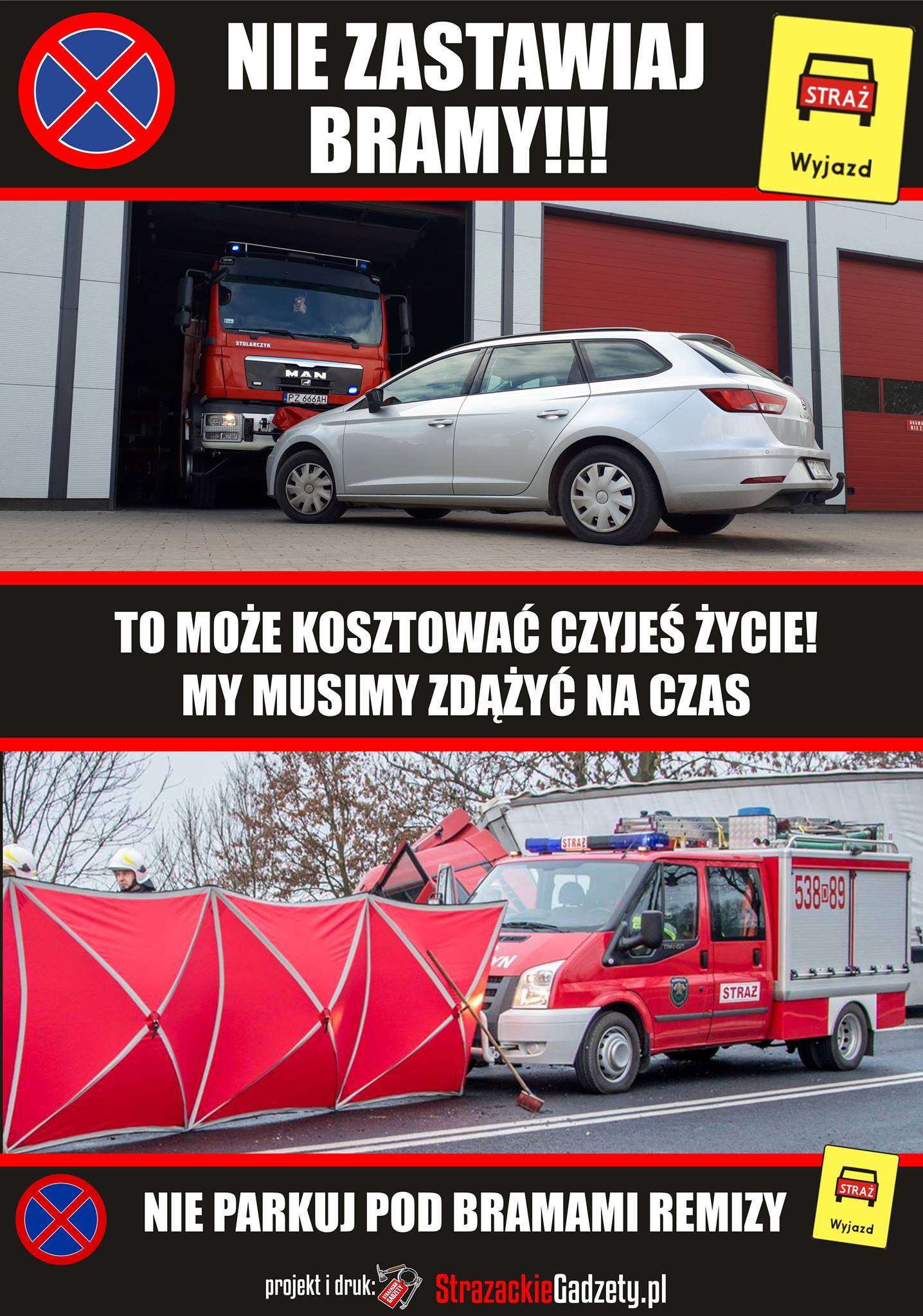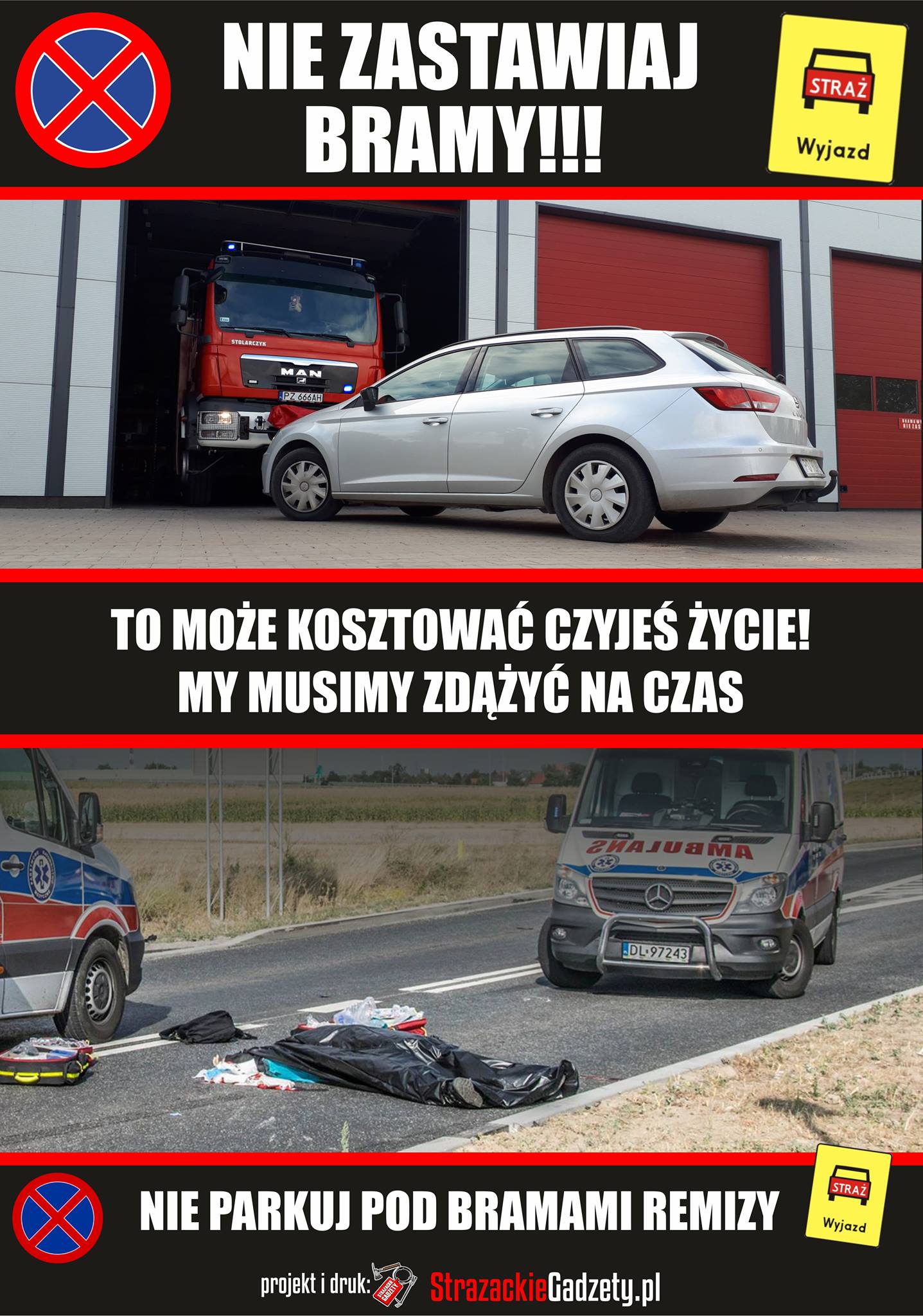 PAMIĘTAJ, ŻE WÓZ STRAŻACKI TO DUŻY SAMOCHÓD SPECJALNY, KTÓRY MOŻE NIE WYJECHAĆ PRZEZ TWOJĄ GŁUPOTĘ DO POŻARU TWOJEGO DOMU, POMOCY MEDYCZNEJ TWOJEMU TACIE/MAMIE/DZIECKU, DO WYPADKU W KTÓRYM UCZESTNICZĄ TWOI PRZYJACIELE/ZNAJOMI PRZEZ CO URATOWANIE ICH STANIE SIĘ NIEMOŻLIWE !!!