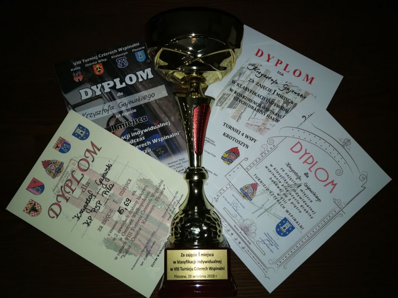 W dniach 20-28 września 2018r odbyła się VIII edycja Turnieju Czterech Wspinalni rozgrywanych w Wielkopolsce na obiektach w Kaliszu, Ostrowie Wielkopolskim, Krotoszynie oraz Pleszewie. Reprezentant KP PSP w Pile kpt. Krzysztof Gajewski zwyciężył w rywalizacji ze strażakami z Wielkopolski we wszystkich etapach co dało mu wygraną całego zorganizowanego turnieju.
