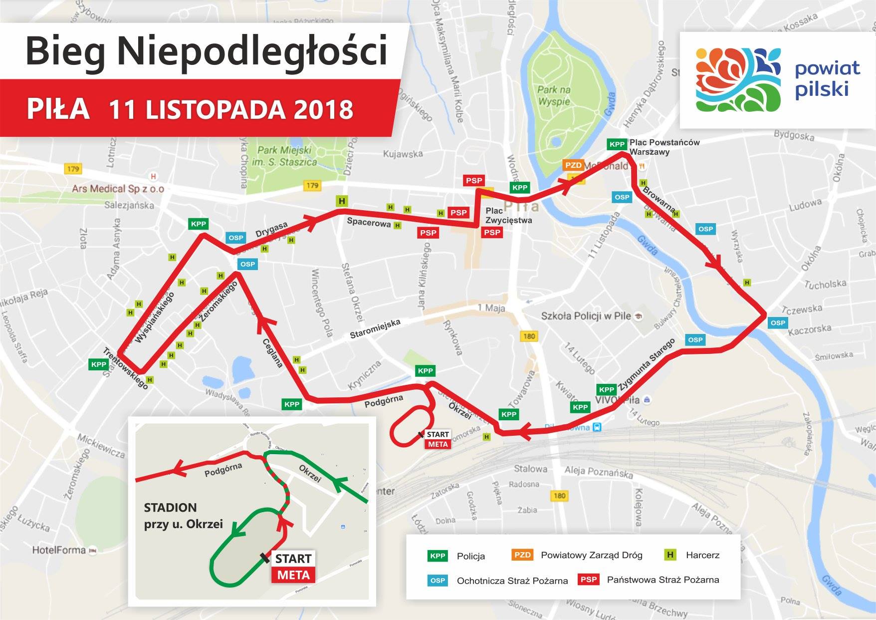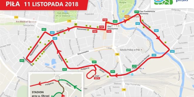 „Tak wygląda trasa Biegu Niepodległości, który już w niedzielę 11 listopada ruszy na Stadion przy Okrzei w Pile.