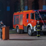 Zaproszonych gości w imieniu własnym oraz gospodarza gminy Pani Wójt Małgorzaty Włodarczyk przywitał bryg. Rafał Mrowiński – Komendant Powiatowy Państwowej Straży Pożarnej w Pile. Symboliczne przekazanie kluczyków do nowego samochodu na ręce prezesa i naczelnika naszej jednostki dokonali wspólnie Wielkopolski Komendant Wojewódzki PSP w Poznaniu bryg. Andrzej Bartkowiak oraz Wójt Gminy Małgorzata Włodarczyk. Następnie ks. proboszcz Błażej Kownacki poświęcił i pobłogosławił nowy samochód.