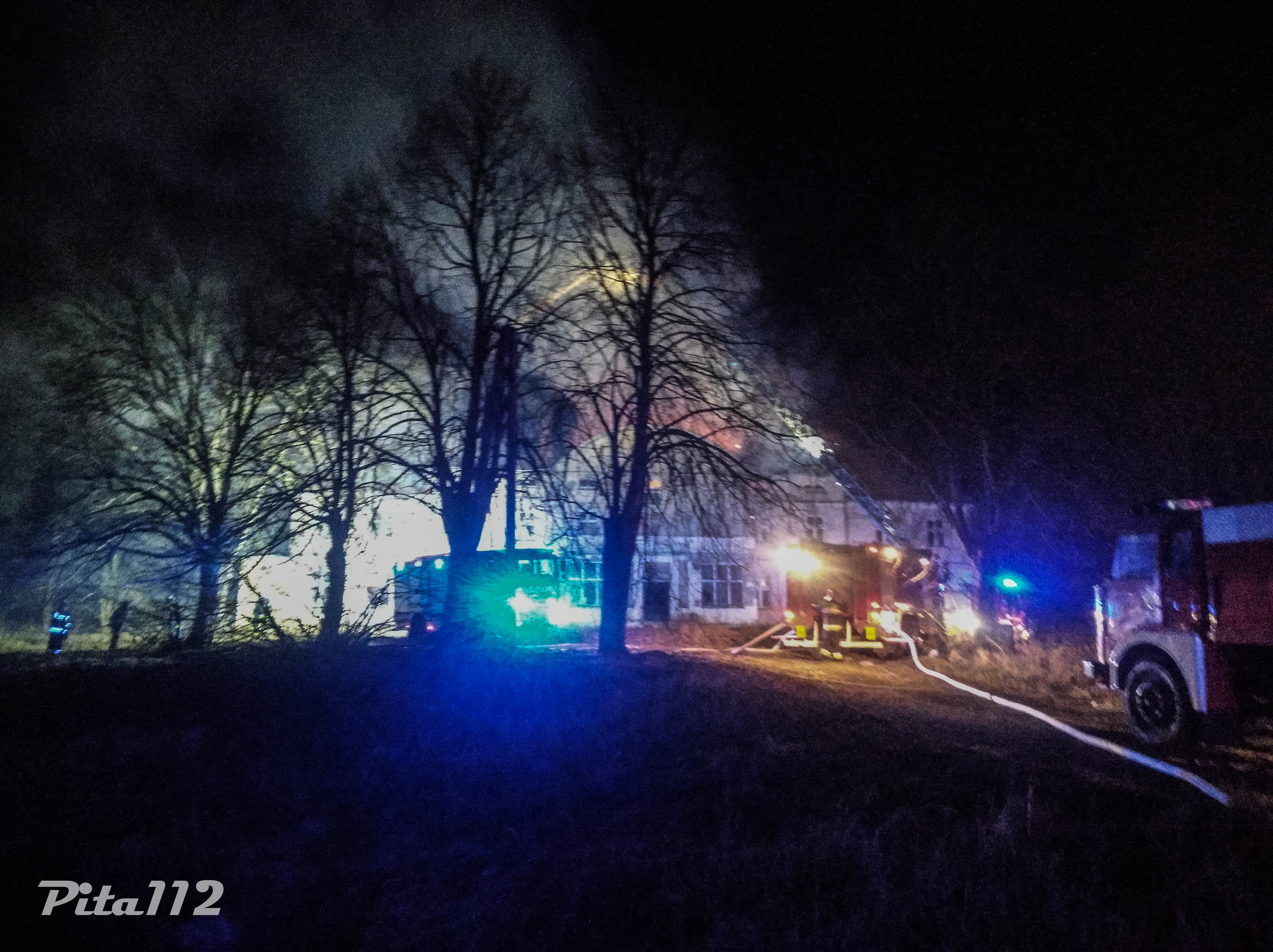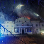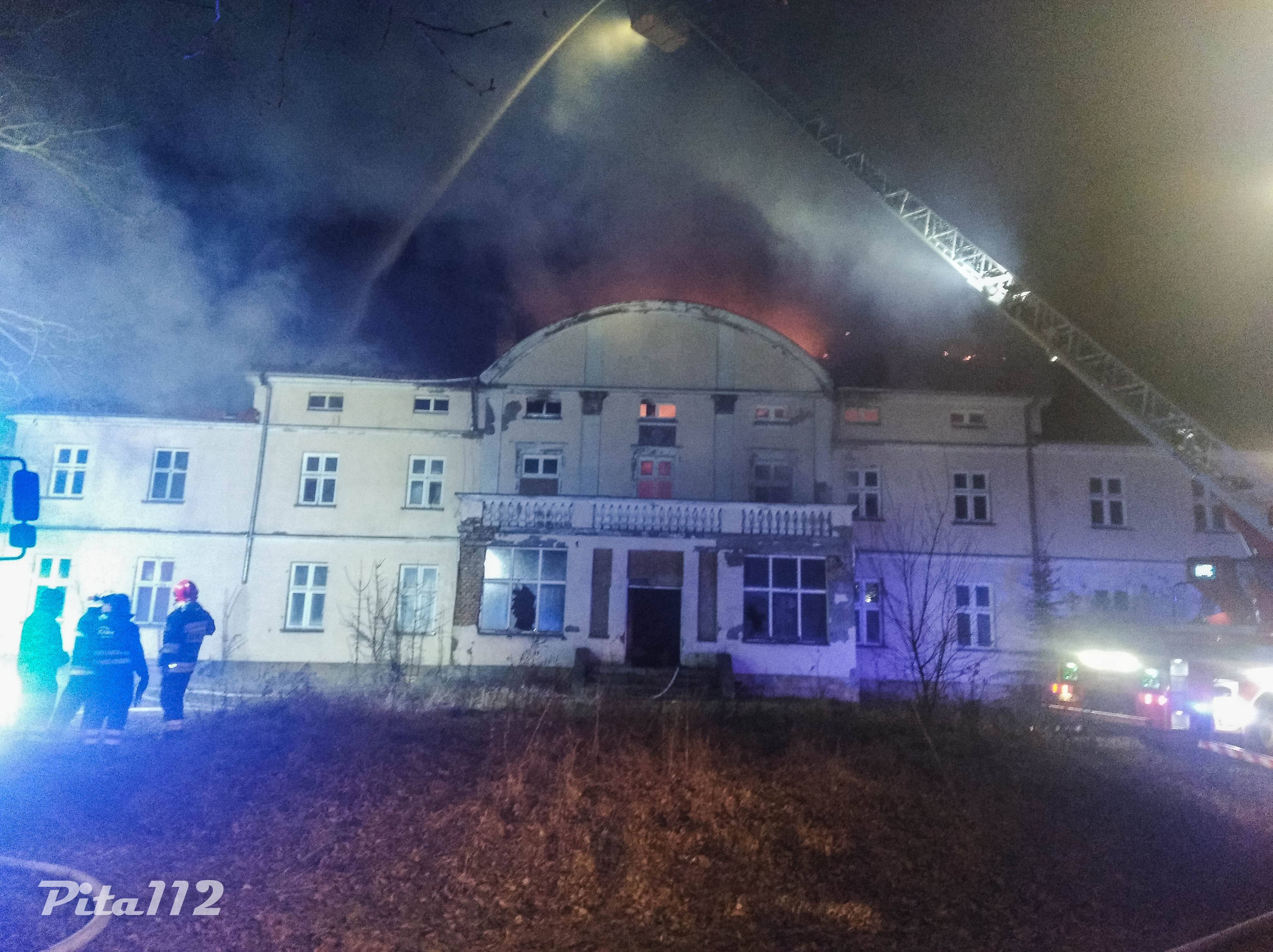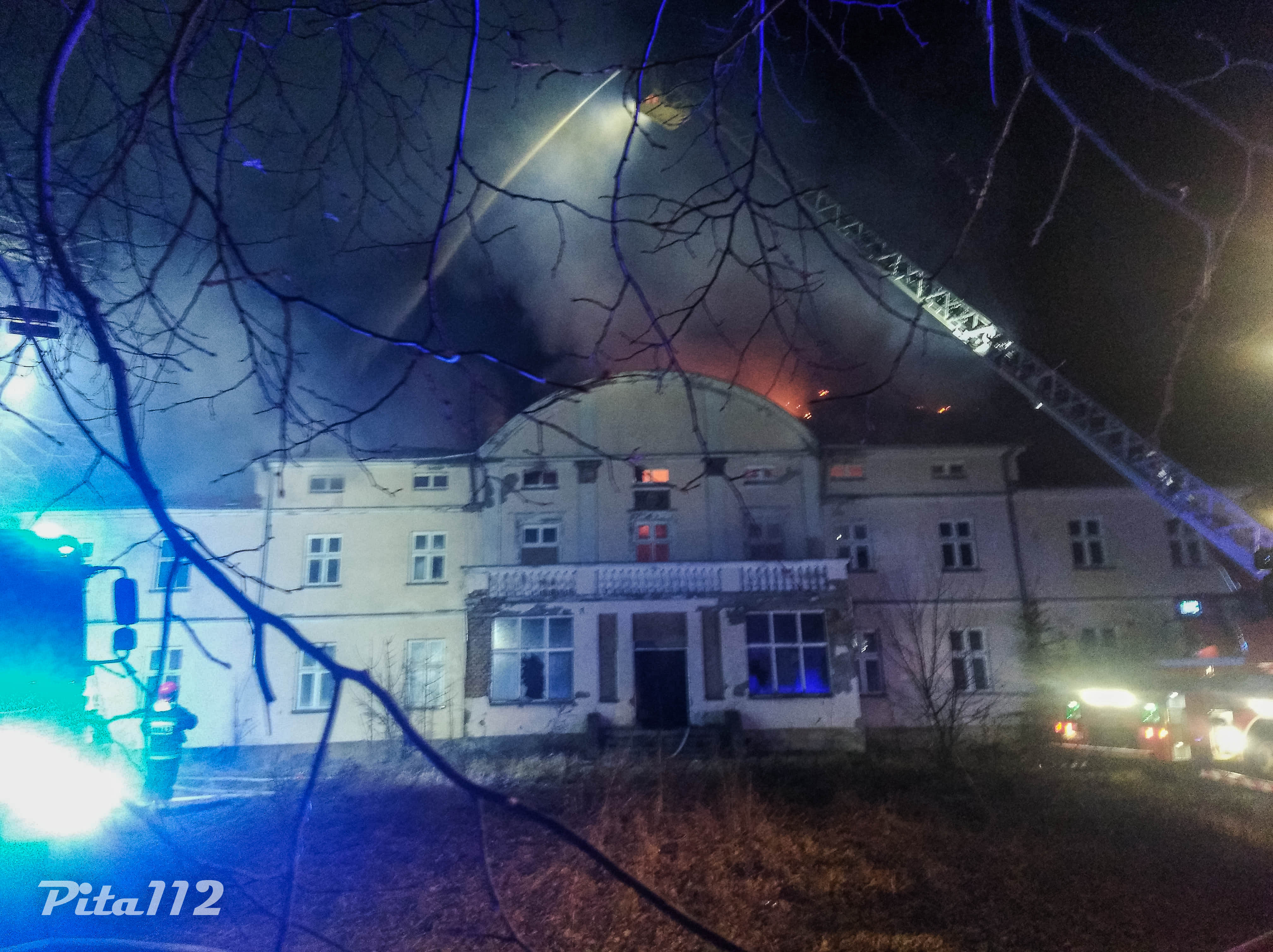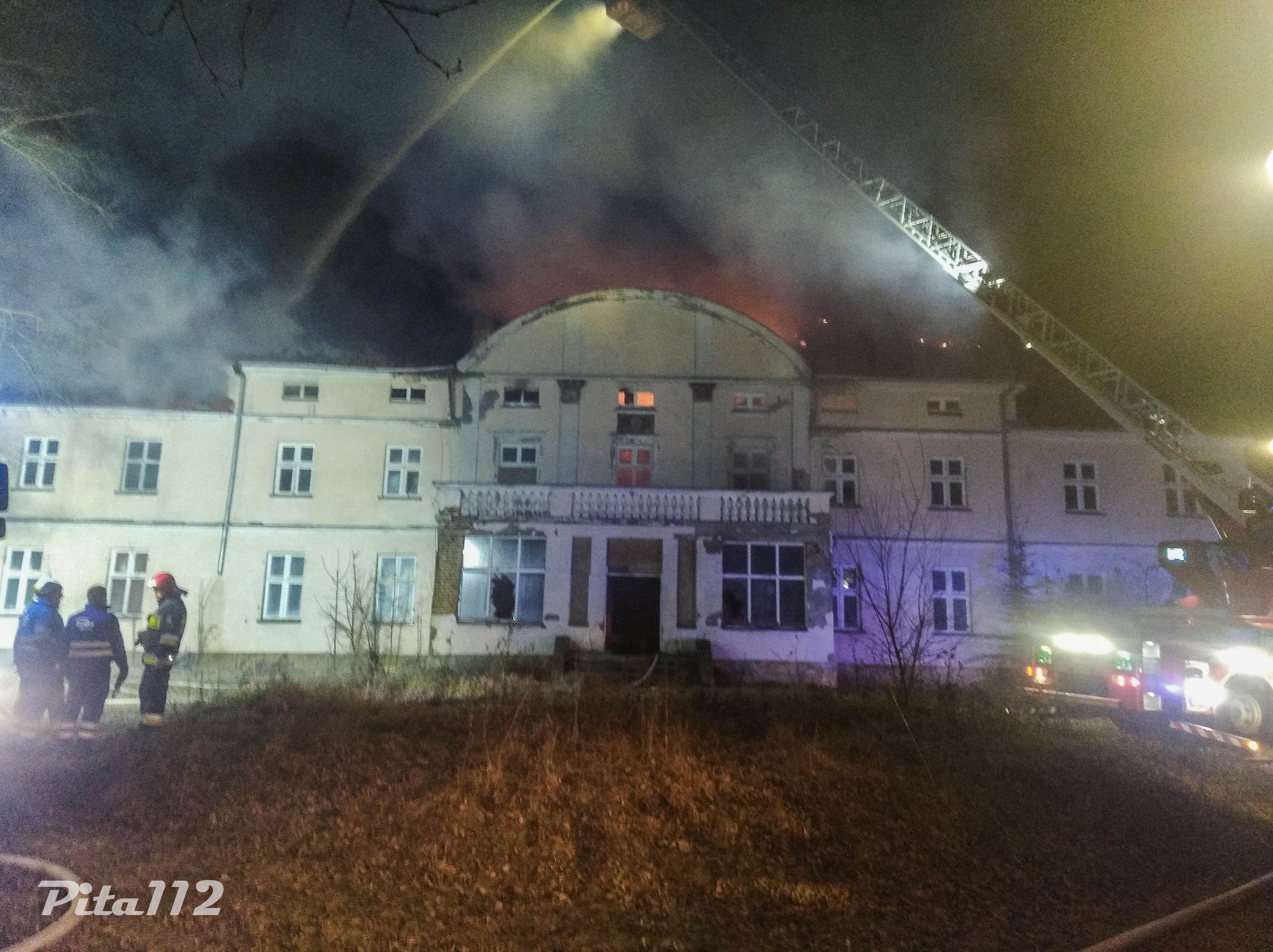 Po dojeździe na miejsce zdarzenia pierwszych jednostek, rozpoznano, iż ogniem objęty jest dach zabytkowego pałacu.