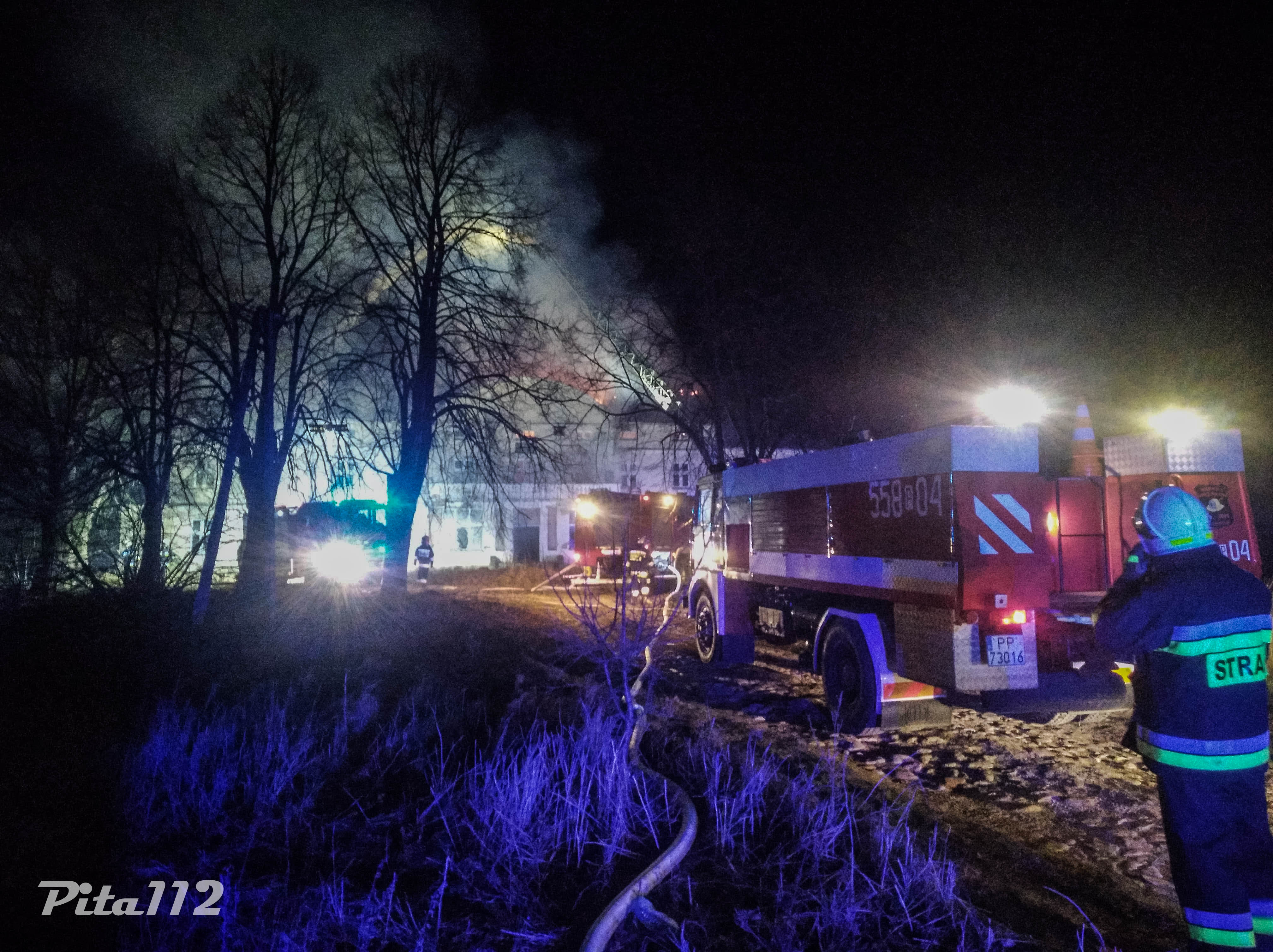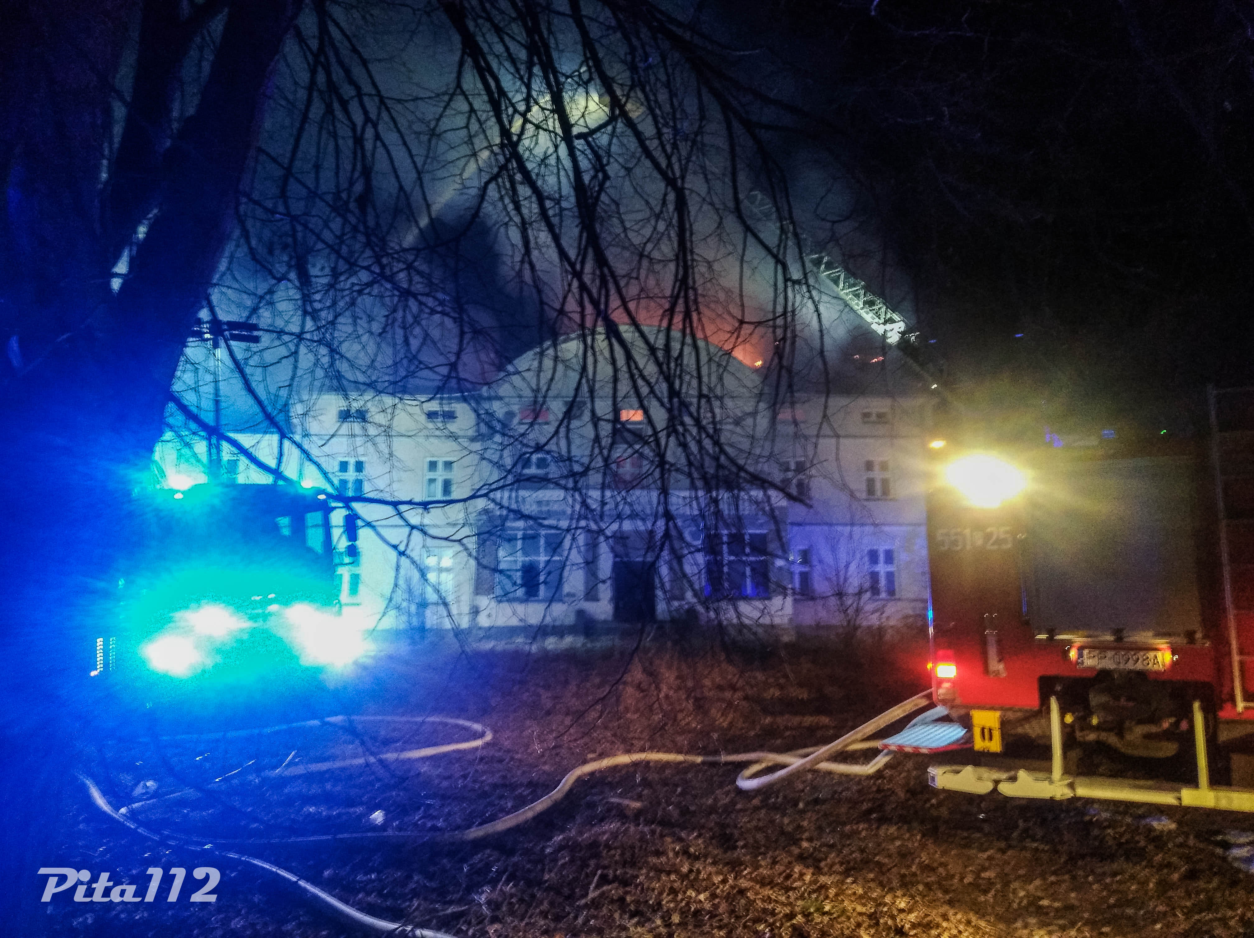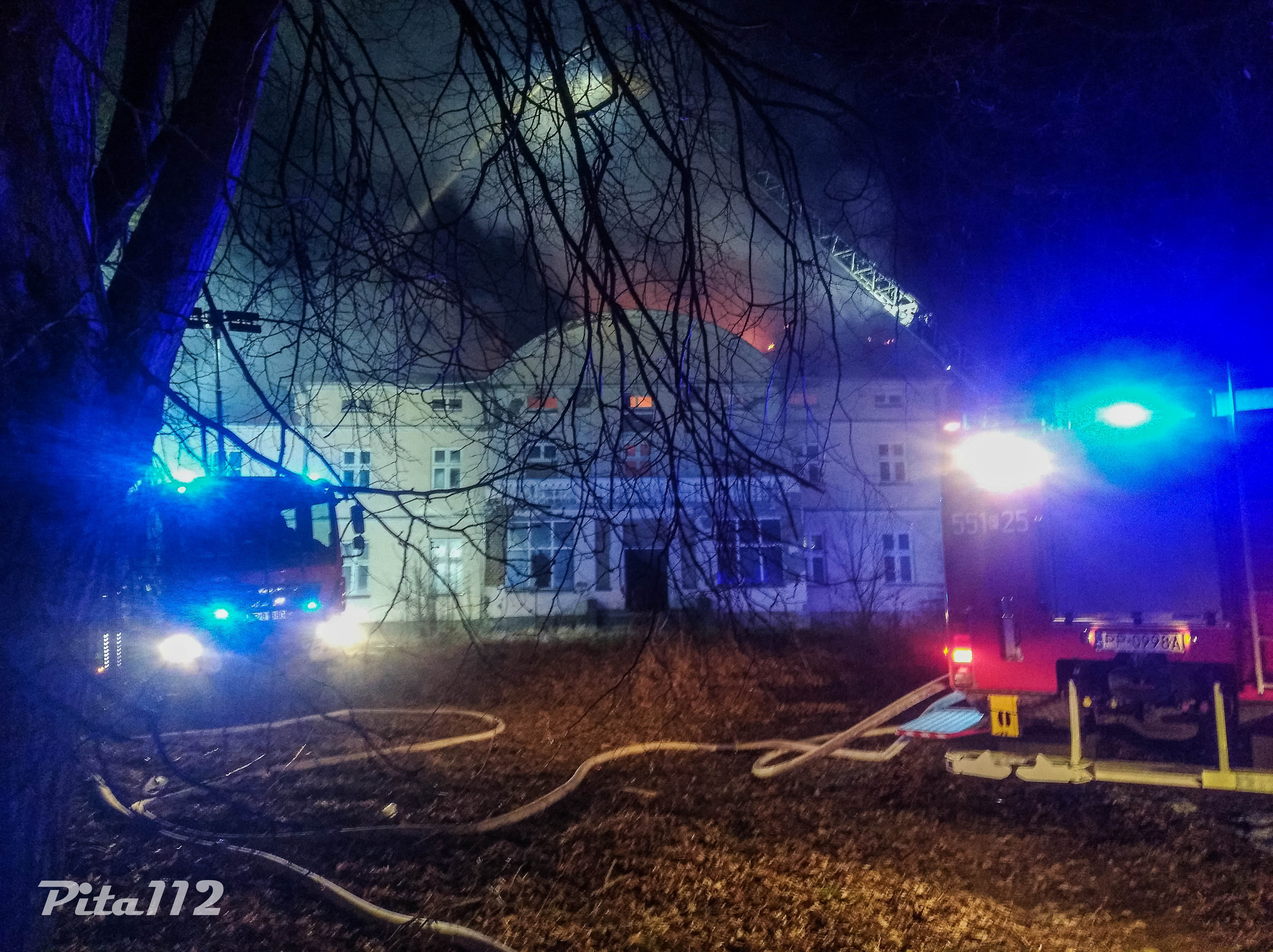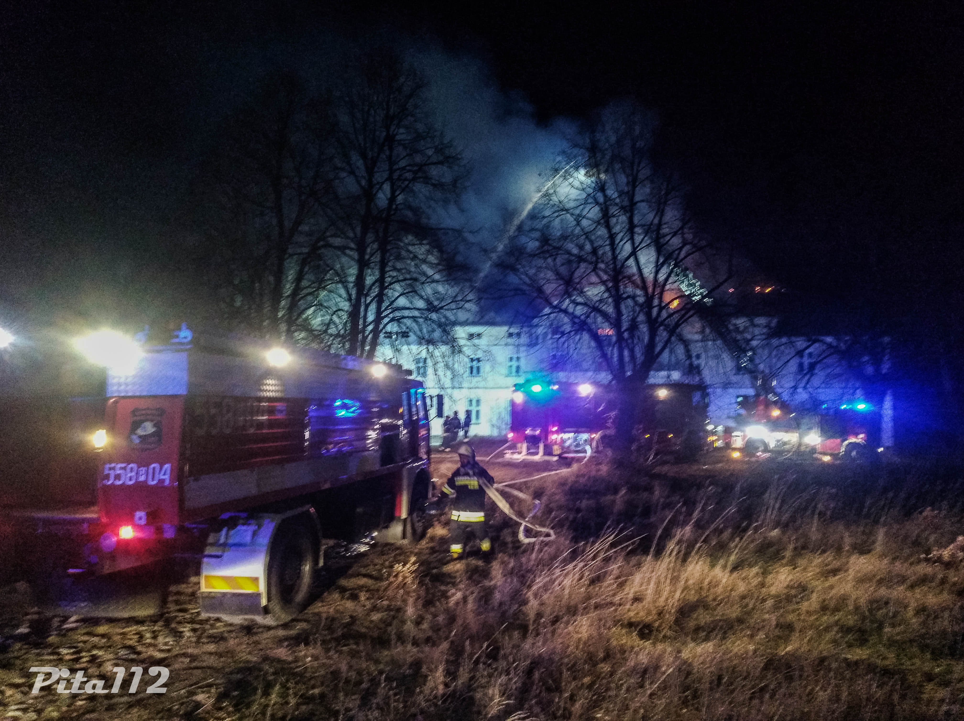 Przed godziną pierwszą w nocy w dniu dzisiejszym 24.01.2019 w Kotuniu, gm. Szydłowo wybuch pożar obiektu zabytkowego. Na miejsce zadysponowane zostały znaczne siły i środki.
