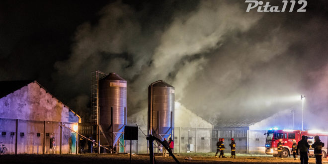 Po dojeździe na miejsce pierwszych zastępów budynek był w znacznym stopniu objęty ogniem, w środku panowało silne zadymienie, a dodatkowo istniało zagrożenie przeniesienia się ognia na budynki sąsiadujące. Na miejsce dysponowane były kolejne siły i środki. Na szczęście nie dopuszczono się do rozprzestrzenienia się pożaru na sąsiednie kurniki.