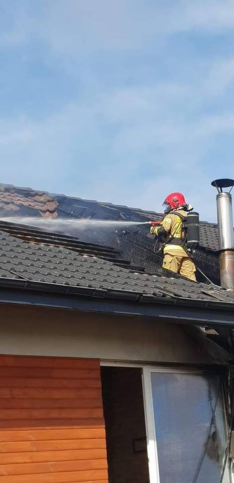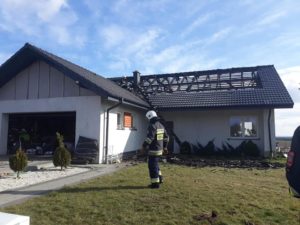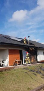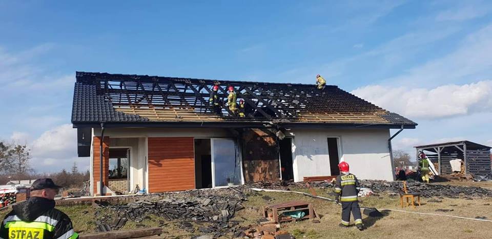 Na miejsce jako pierwszy dojechał zastęp z OSP Szydłowo, który to potwierdził treść zgłoszenia. Mieszkańcy domu opuścili go przed przyjazdem na miejsce zastępów straży pożarnej. Pożarem objęty był dach oraz poddasze budynku mieszkalnego. Działające na miejscu zastępy zabezpieczyły miejsce zdarzenia i przystąpiły do działań gaśniczych. Strażacy ze względu na silne zadymienie pracowali w aparatach Ochrony Dróg Oddechowych. Po opanowaniu pożaru przystąpiono do rozbiórki spalonych elementów dachu oraz sukcesywnie dogaszano zarzewia ognia.