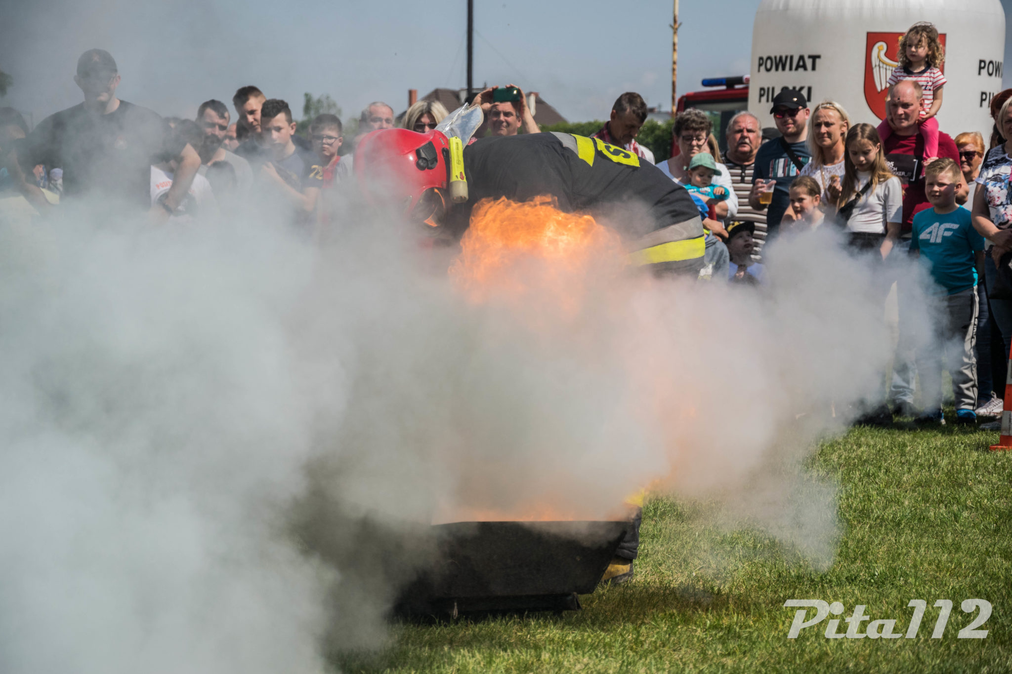 W dalszej części pikniku odbył się pokaz gaszenia przy pomocy podręcznego sprzętu gaśniczego – gaśnic. Wykorzystano w tym celu trzy typy gaśnic – proszkową, pianową oraz śniegową. Swoje możliwości strażacy pokazali wykorzystując drabinę o wysięgu maksymalnym 37 metrów. Niewątpliwą atrakcją, która jest obecna na każdym z pikników jest przeciąganie liny. W tym roku do rywalizacji stanęły trzy drużyny: drużyna składająca się z Ochotników, drużyna z Państwowej Straży Pożarnej oraz drużyna mieszkańców powiatu Pilskiego. W tej rywalizacji bezkonkurencyjny okazali się Ochotnicy zajmując I miejsce.