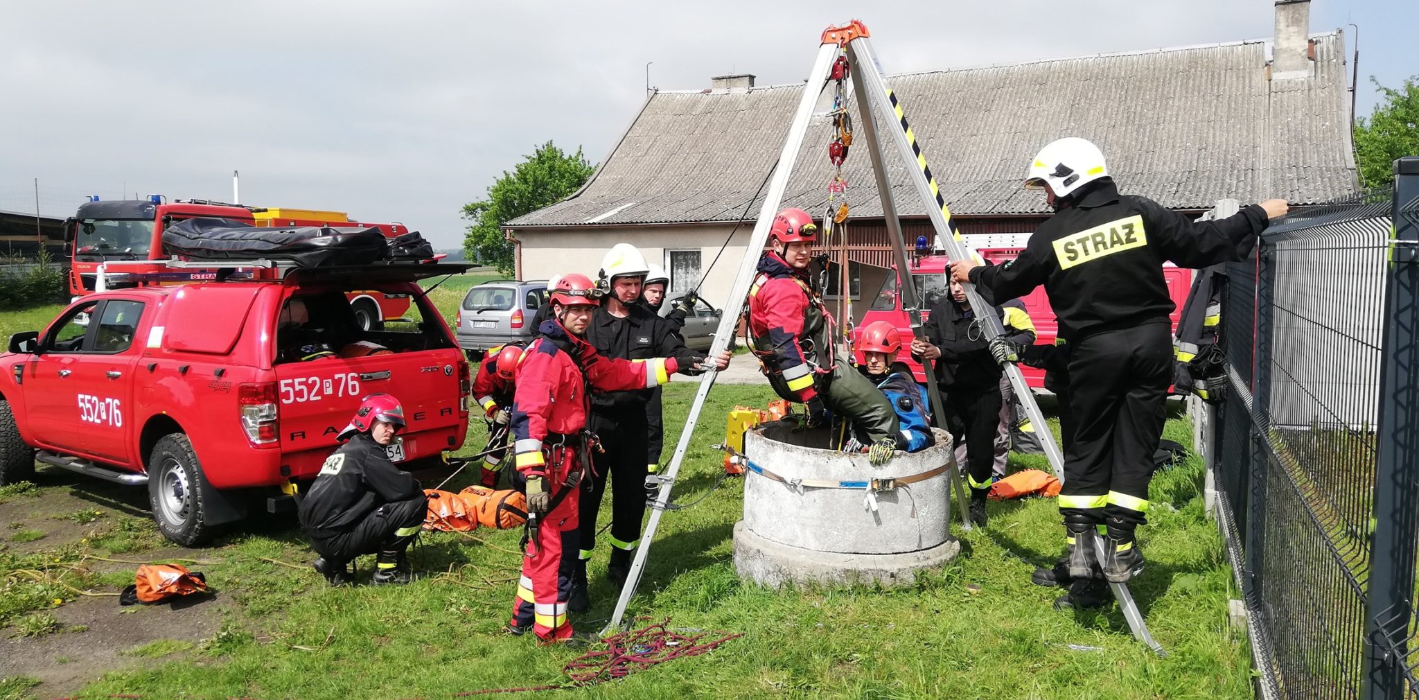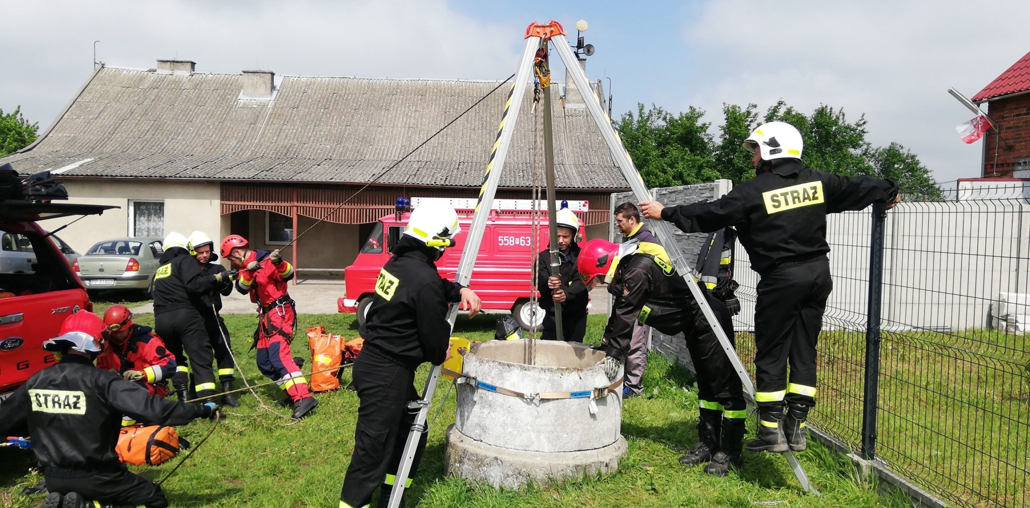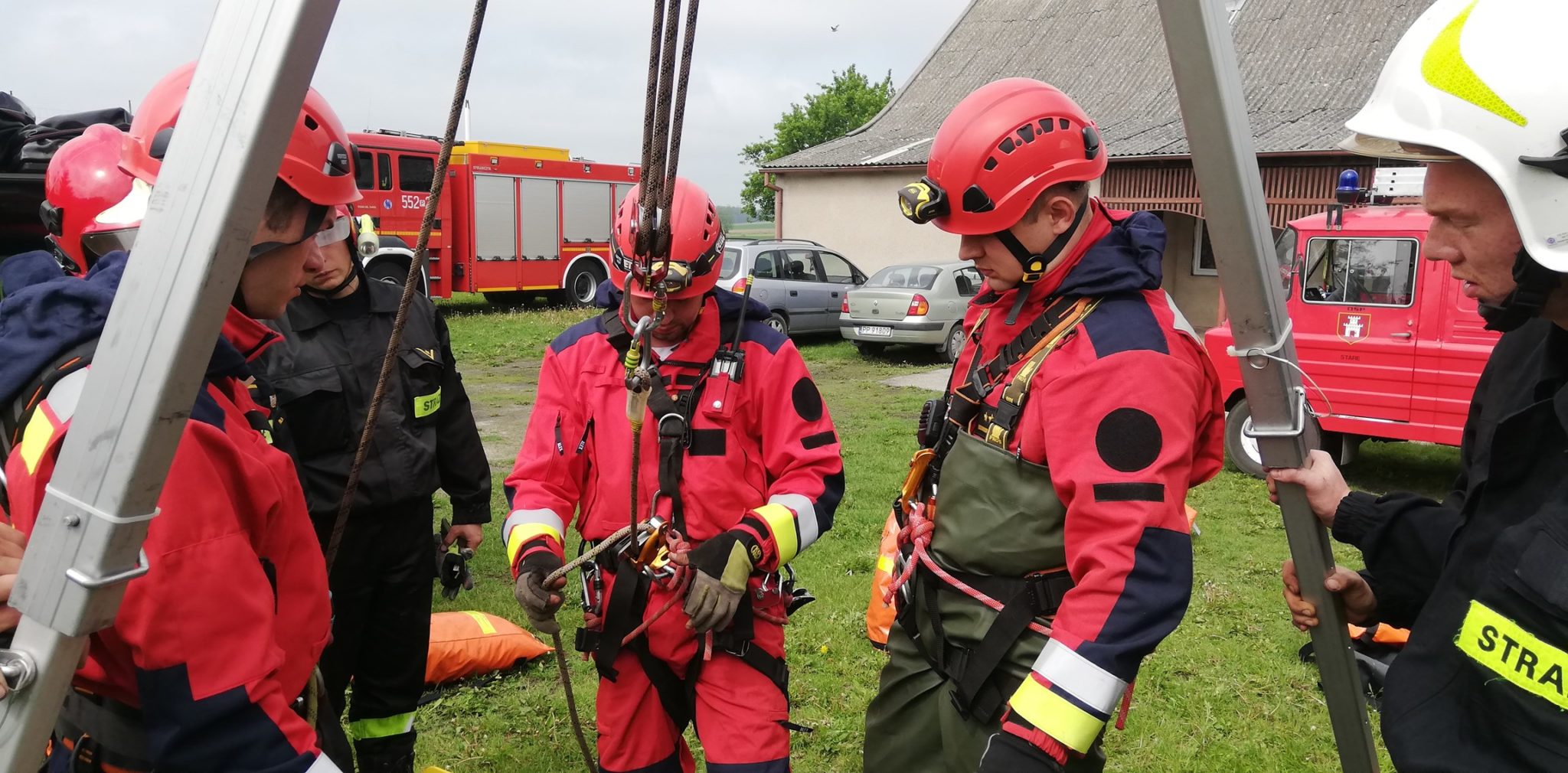 W części praktycznej realizowanej w oparciu o studnię mokrą o głębokości 14 metrów przy pomocy sprzętu wysokościowego zrealizowano w praktyce działania ratownicze. Podczas działań ratowniczych szczególną uwagę zwrócono na prawidłowe rozpoznanie i zabezpieczenie miejsca zdarzenia. Następnie zbudowano układ wyciągowy i asekuracyjny dla ratownika oraz poszkodowanego. Jeden z ratowników opuszczony został na układzie linowym na dno studni i wydobył poszkodowanego. Przez cały przebieg założenia strażacy kontrolowali miernikiem wielogazowym poziom tlenu w atmosferze na dnie studni. Ćwiczenia wykonane zostało dwukrotnie z wykorzystaniem aparatów powietrznych.