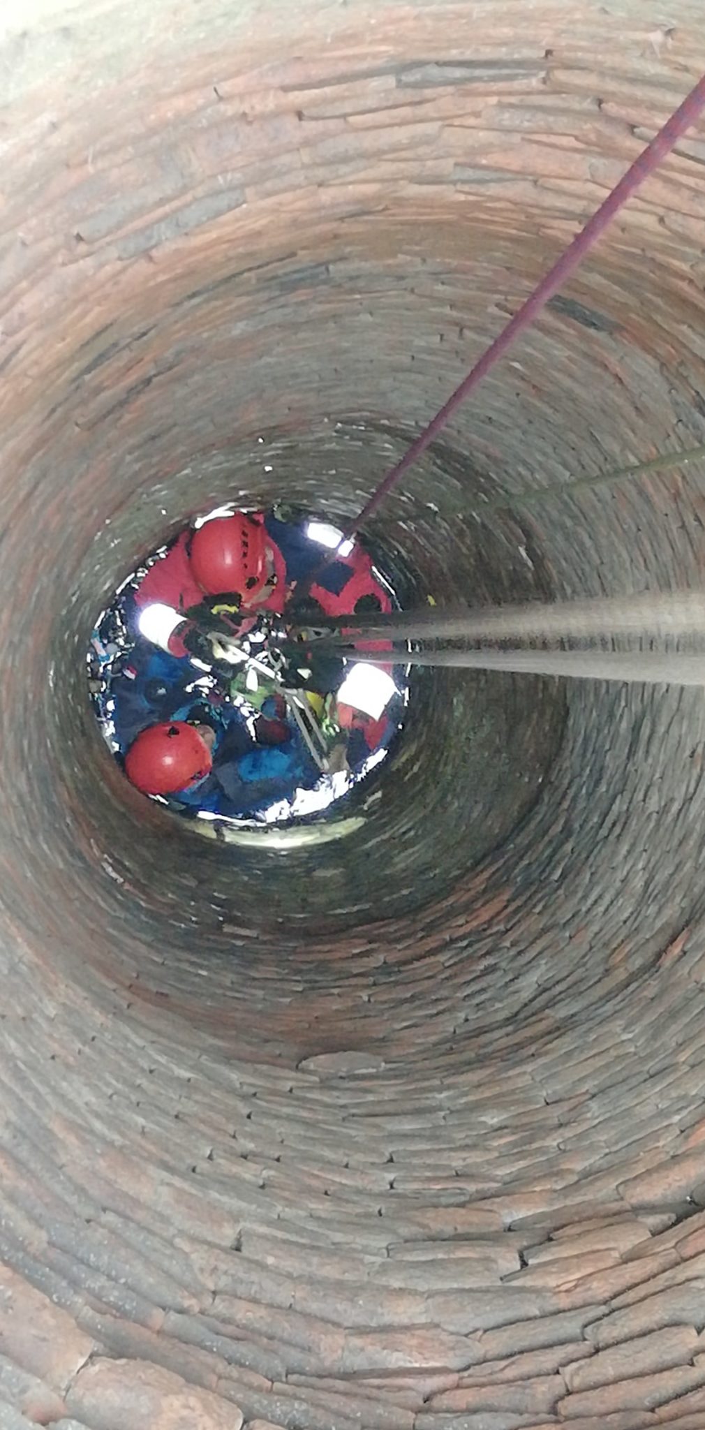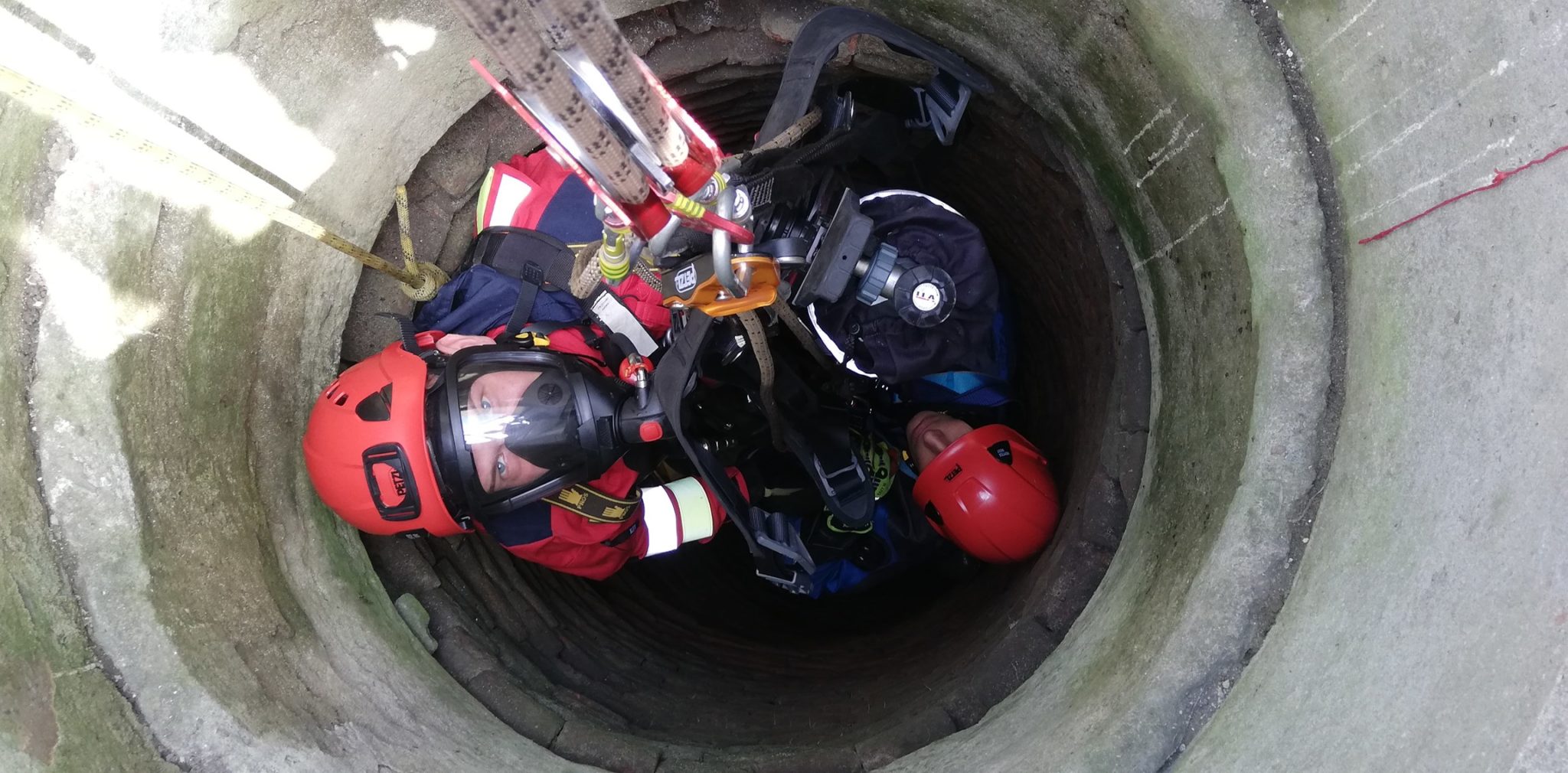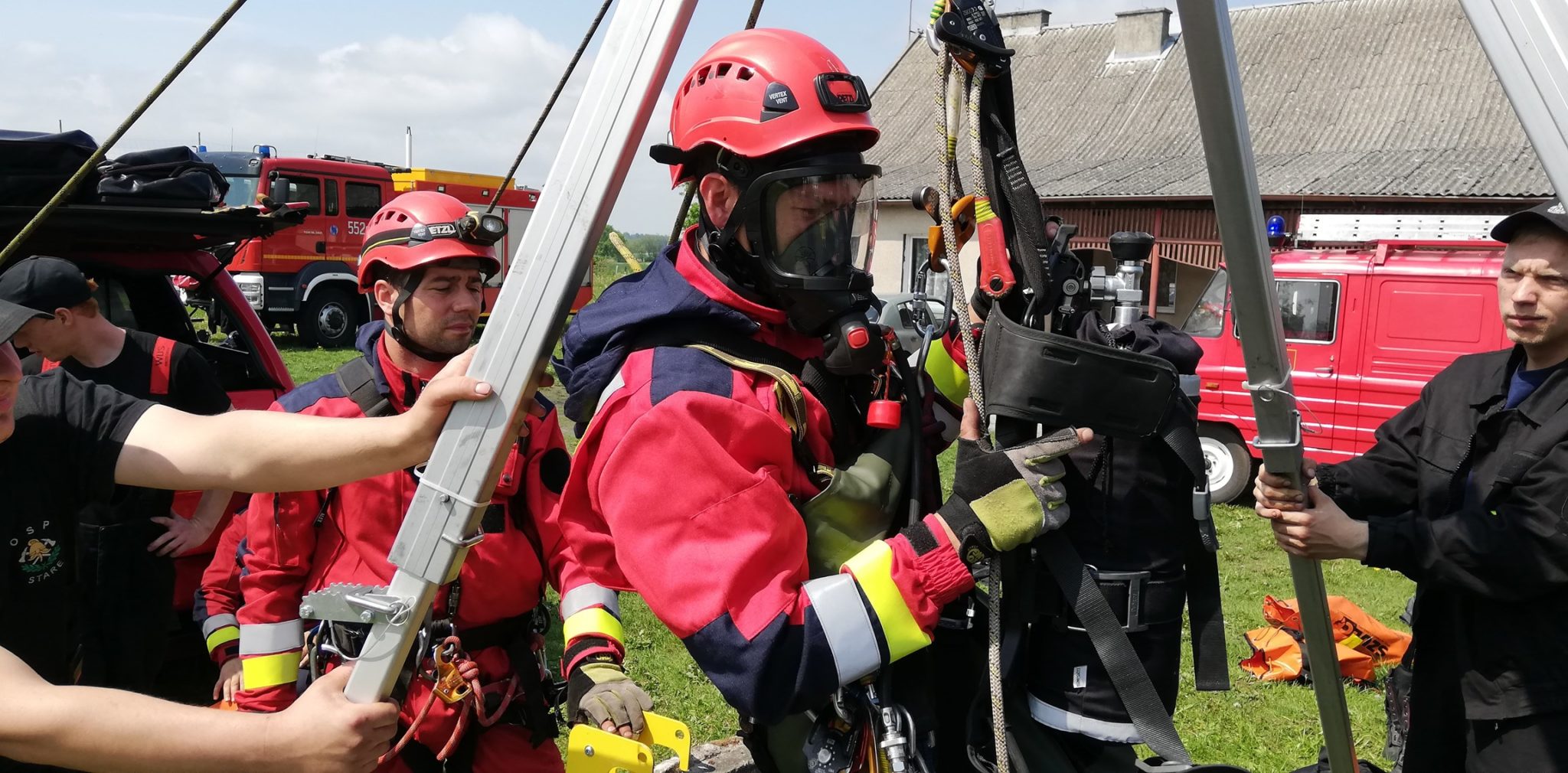 W części praktycznej realizowanej w oparciu o studnię mokrą o głębokości 14 metrów przy pomocy sprzętu wysokościowego zrealizowano w praktyce działania ratownicze. Podczas działań ratowniczych szczególną uwagę zwrócono na prawidłowe rozpoznanie i zabezpieczenie miejsca zdarzenia. Następnie zbudowano układ wyciągowy i asekuracyjny dla ratownika oraz poszkodowanego. Jeden z ratowników opuszczony został na układzie linowym na dno studni i wydobył poszkodowanego. Przez cały przebieg założenia strażacy kontrolowali miernikiem wielogazowym poziom tlenu w atmosferze na dnie studni. Ćwiczenia wykonane zostało dwukrotnie z wykorzystaniem aparatów powietrznych.