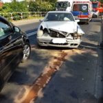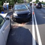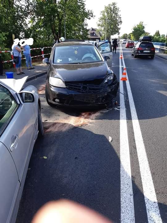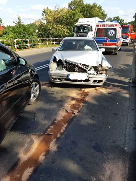 Po niespełna 10 minutach do SKKP w Pile wpływa zgłoszenie o zdarzeniu drogowym w Ujściu. Przybyłe na miejsce zdarzenia zastępy rozpoznały iż doszło do zderzenia 3 pojazdów, a dwie osoby są poszkodowane. Do działań przybyłych na miejsce zdarzenia zastępów straży pożarnej należało zabezpieczenie miejsca zdarzenia oraz wahadłowym kierowaniu ruchem. Na miejscu znajdował się już Zespół Ratownictwa Medycznego, który udzielał pomocy poszkodowanym. Ostatecznie po przebadaniu żadna z osób nie wymagała hospitalizacji i zdarzenie uznano za kolizję drogową. Utrudnienia w ruchu trwały około 40 minut.