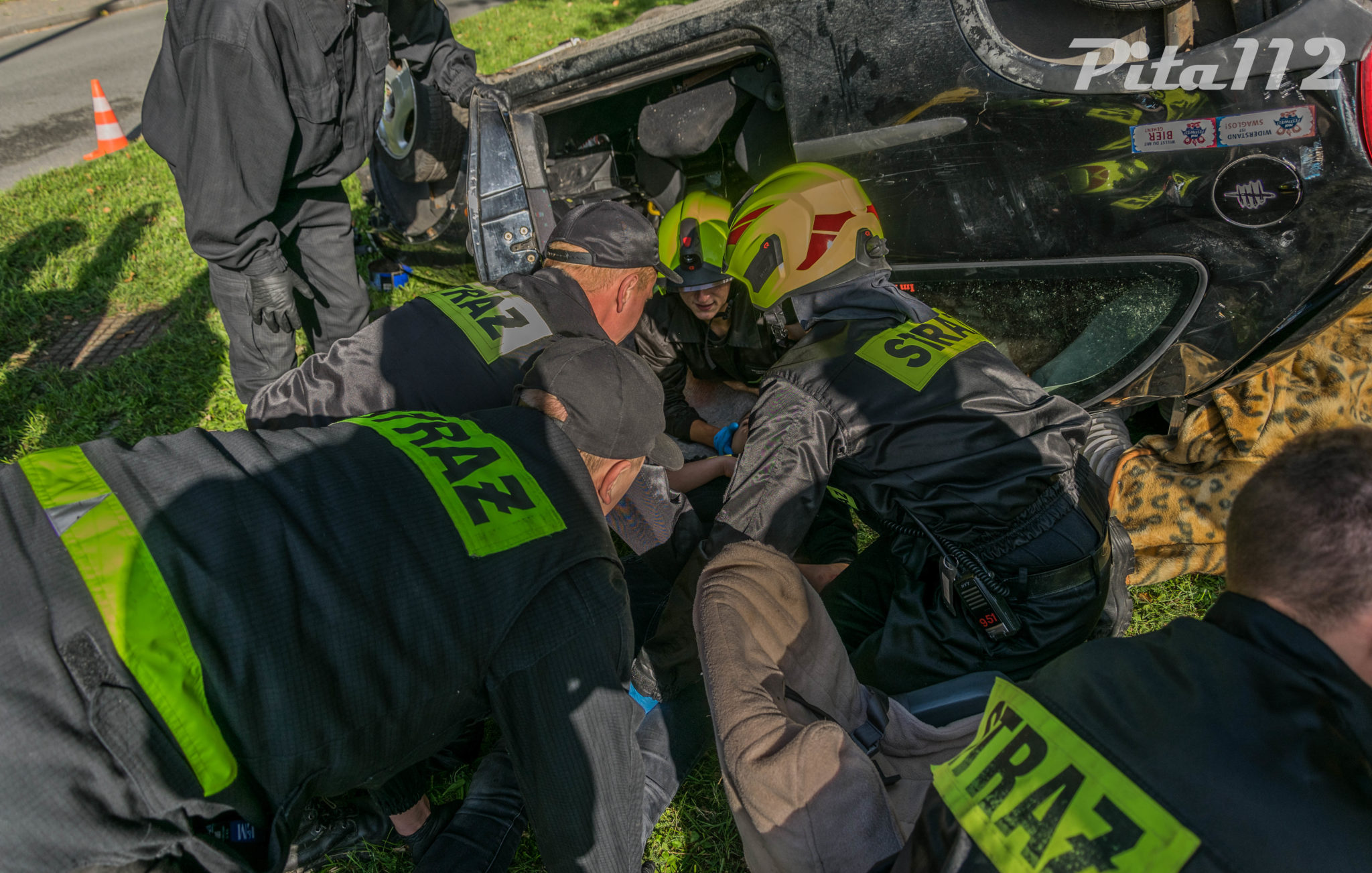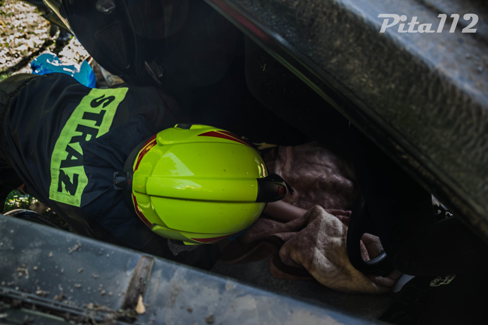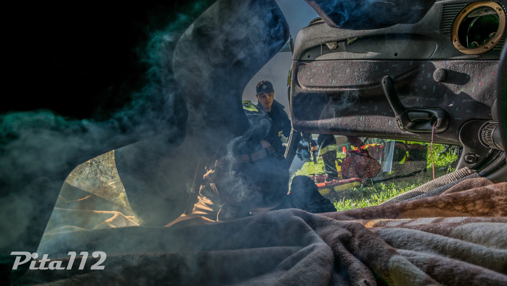 Scenka nr. 4 – Wypadek komunikacyjny, w środku uwięziona matka z niemowlakiem. Jak najszybsze wyciągnięcie dziecka i rozpoczęcie RKO, wyciągnięcie matki i udzielenie KPP. Po 5 minutach od przybycia na miejsce zdarzenia samochód ulega zapłonowi – ewakuacja poszkodowanych poza strefę niebezpieczną.