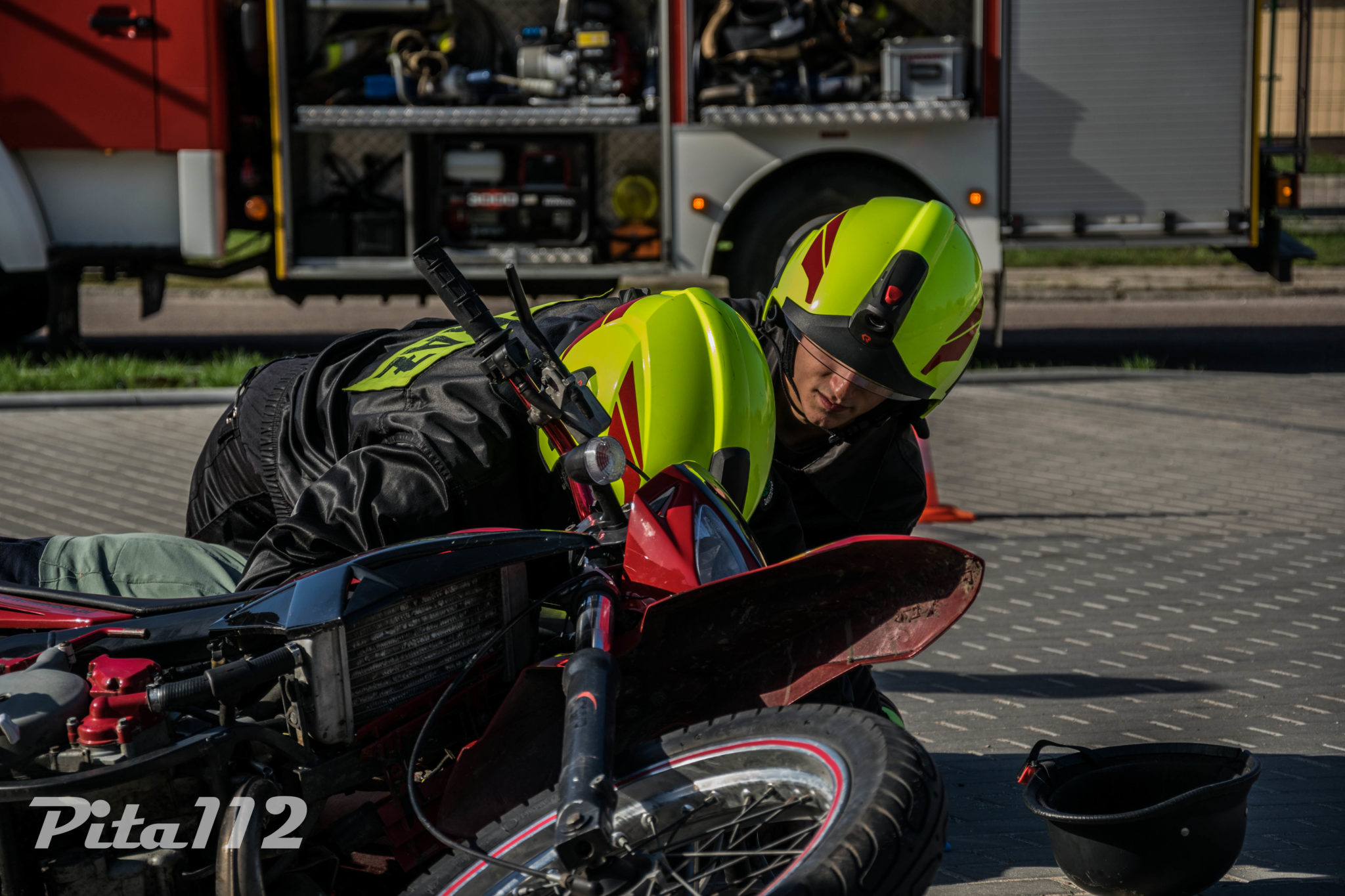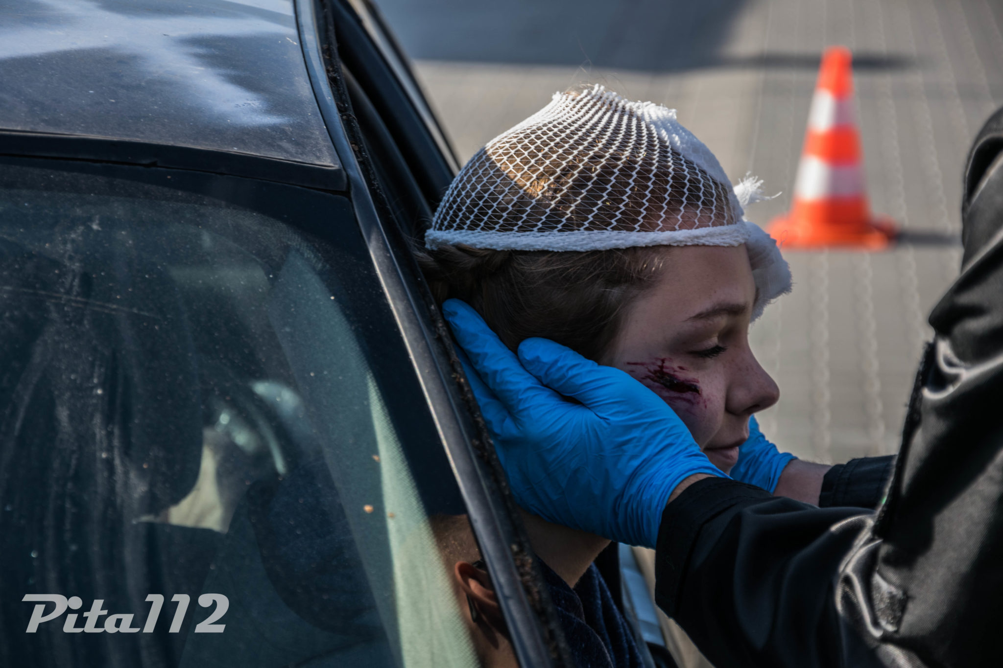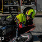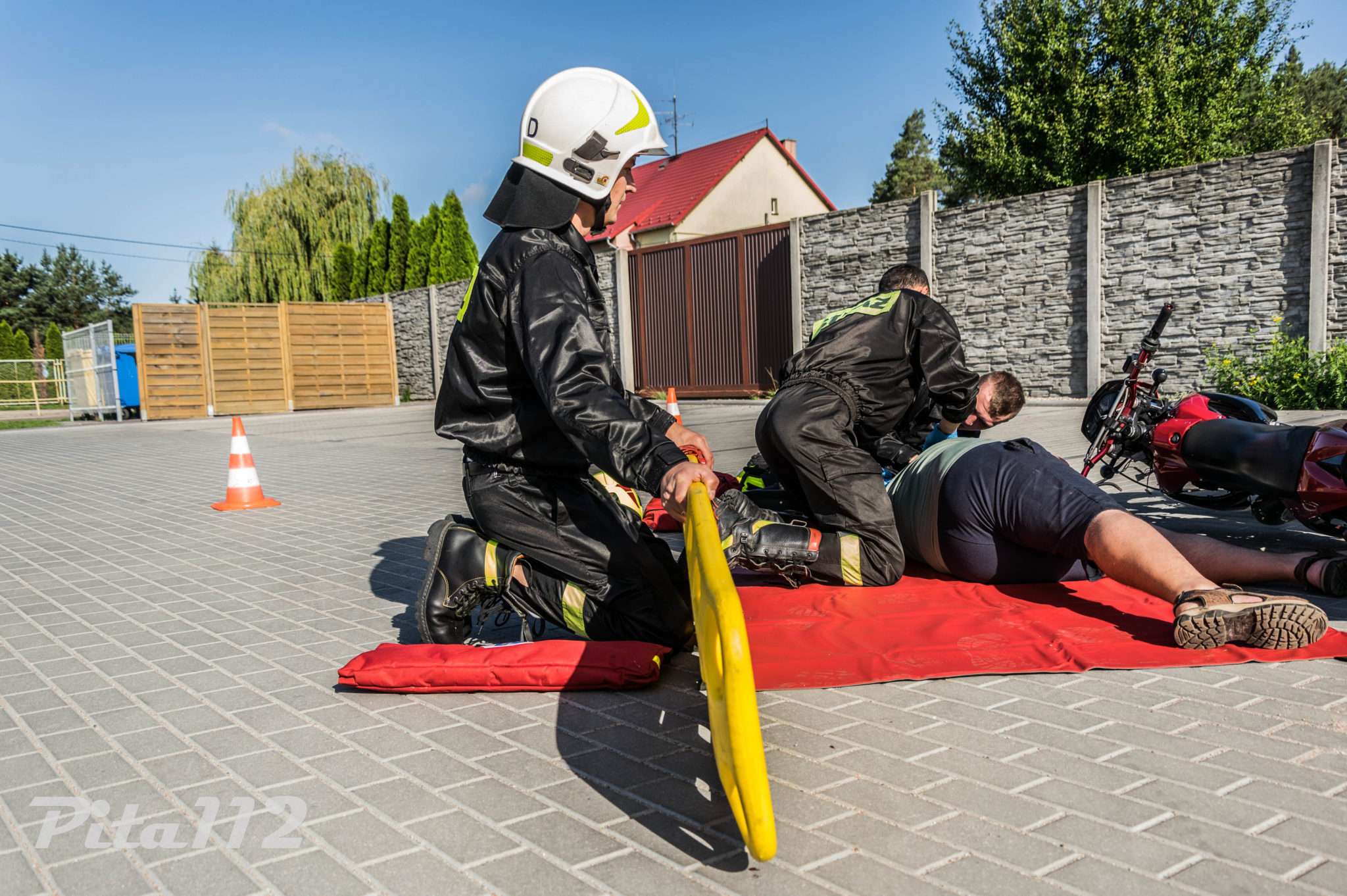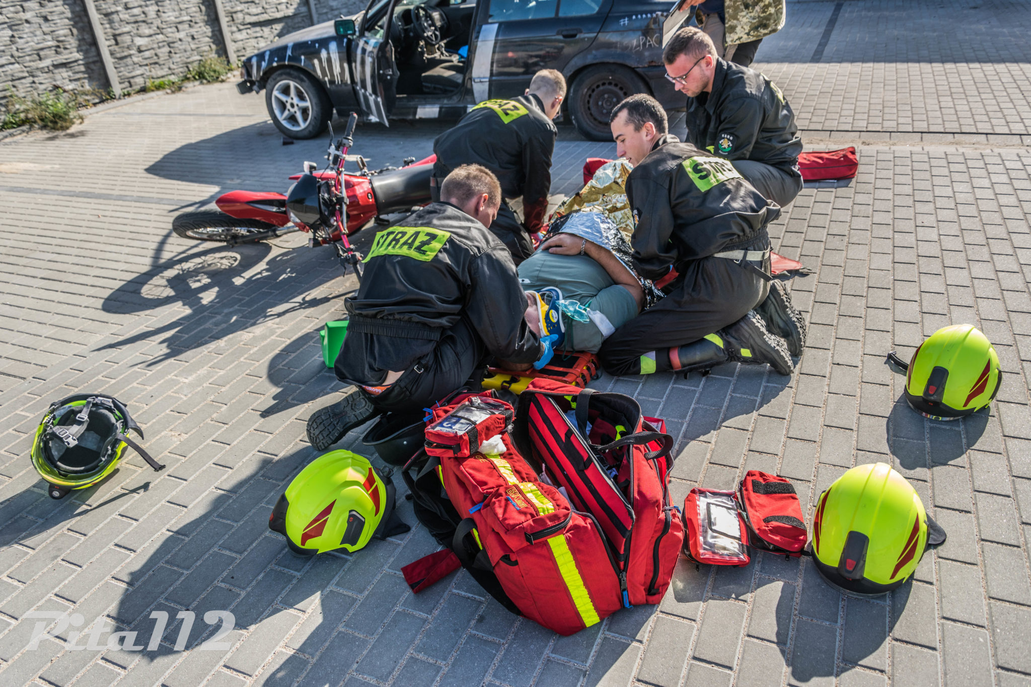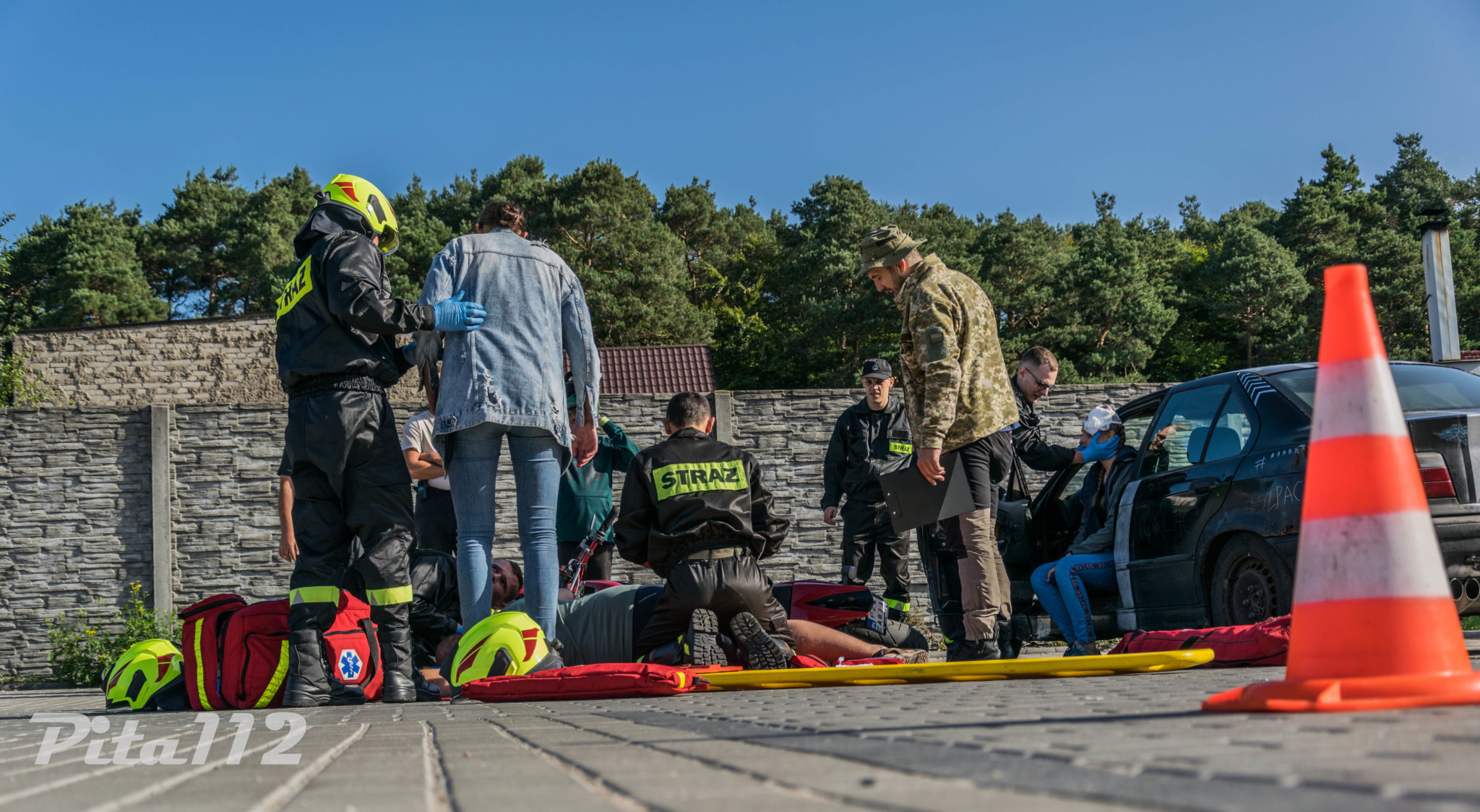 Scenka nr. 6 – Zderzenie motocykla z samochodem, motocyklista to obcokrajowiec(Ukrainiec) u którego podejrzewa się masywny krwotok wewnętrzny. Próba porozumienia, opatrzenie obrażeń zewnętrznych, kontrola funkcji życiowych oraz opatrzenie ran kierującej pojazdem osobowym.