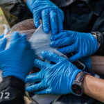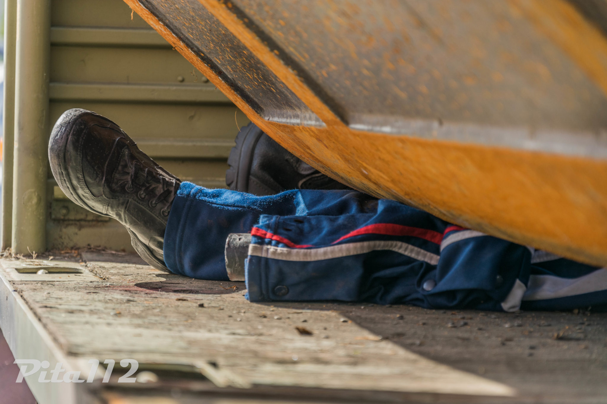 Scenka nr. 3- Podczas rozładunku materiałów budowlanych z przyczepy dochodzi do przygniecenia jednego z pracowników oraz amputacji nogi przez manitu. Jak najszybsze zatamowanie krwotoków.