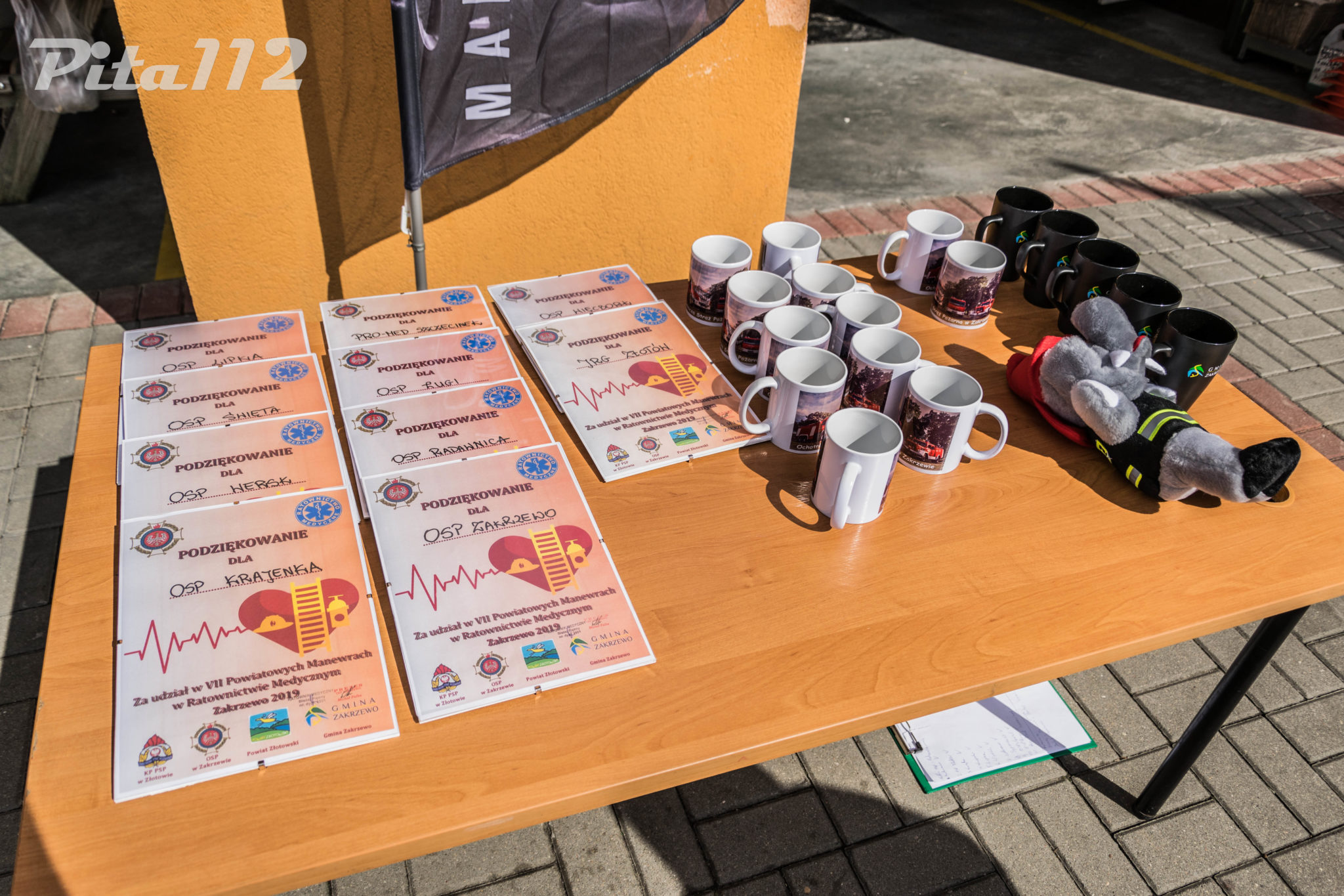 Na koniec podsumowano całe manewry, podziękowano strażakom za obecność i chęć uczestniczenia w tym wydarzeniu oraz rozdano pamiątkowe dyplomy i kubki dowódcom zastępów. Oczywiście nie mogło zabraknąć poczęstunku i wszyscy bardzo chętnie po kilku godzinach zmagań zjedli smaczną grochówkę zapewnioną przez organizatora. Ostatnim punktem manewrów było zrobienie pamiątkowego zdjęcia.