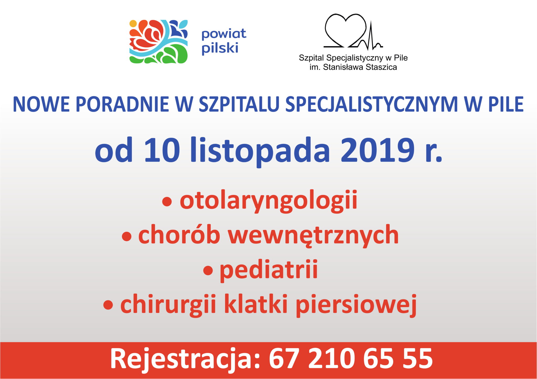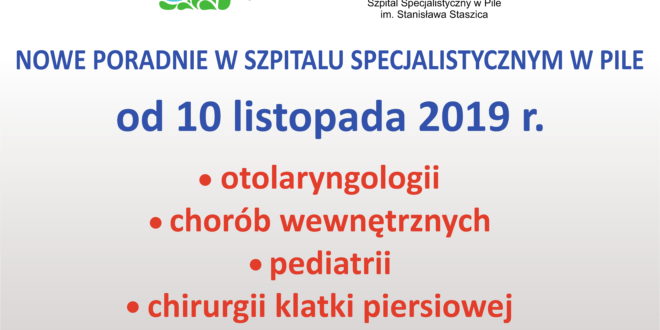W Szpitalu Specjalistycznym w Pile od 10 listopada zaczną funkcjonować cztery nowe poradnie: otolaryngologiczna, chorób wewnętrznych, pediatrii i chirurgii klatki piersiowej. Z kolei w Szpitalu Powiatowym w Wyrzysku już 21 października pacjentów obłożnie chorych wymagających długoterminowego leczenia i pielęgnacji, będzie przyjmował nowy Zakład Opiekuńczo-Leczniczy.