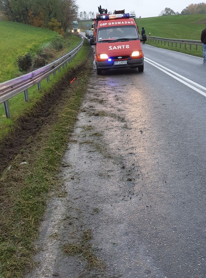 W dniu dzisiejszym (07.11.2019) około godziny 7:15 doszło do zdarzenia drogowego na Drodze Wojewódzkiej nr 242 pomiędzy miejscowościami Falmierowo- Szczerbin.