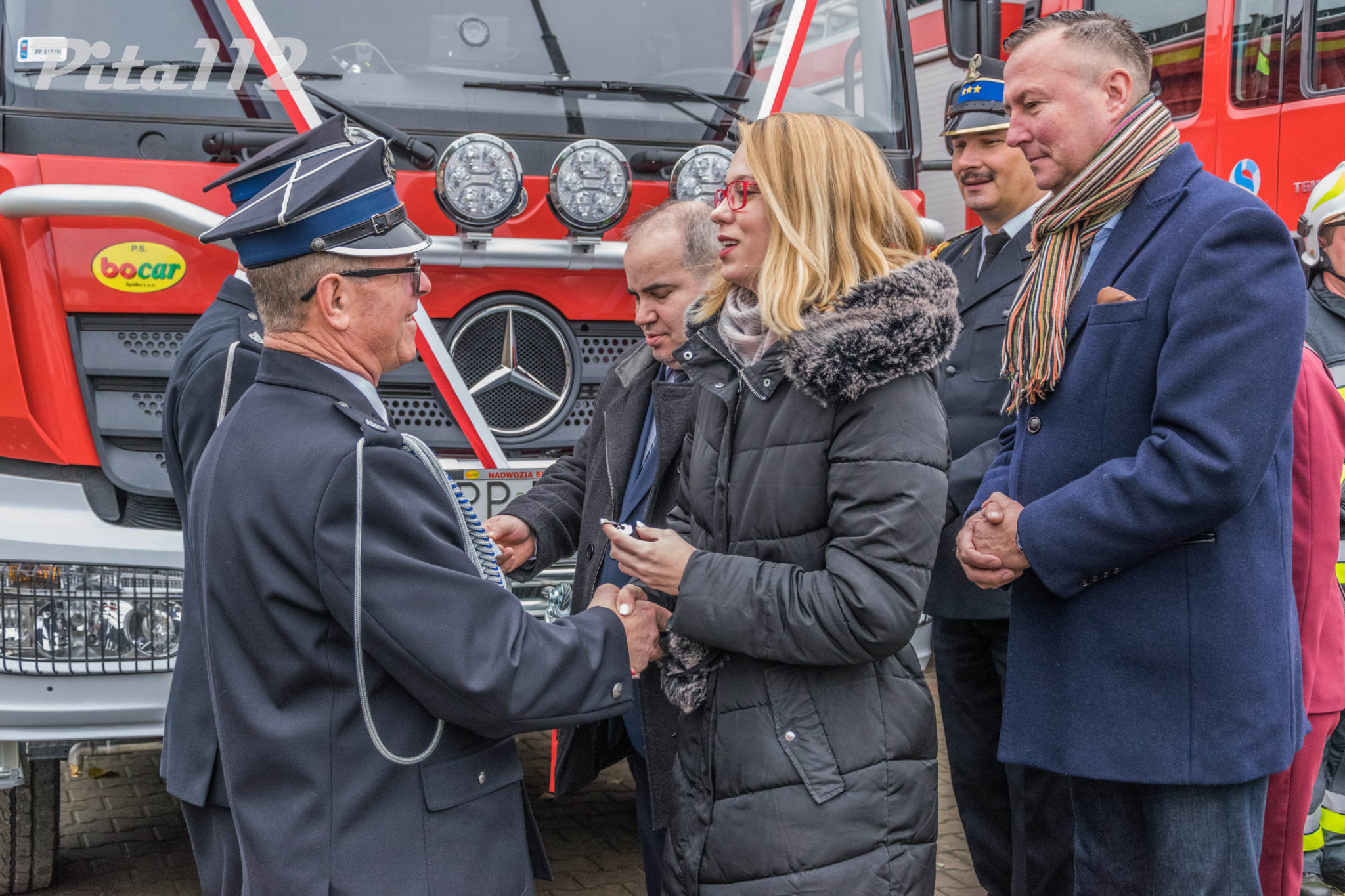 W kolejnym punkcie uroczystości przybyli goście zabrali głos. Dziękowali strażakom za ich wkład w ochronę ludności, za ich zaangażowanie w pozyskanie nowego wozu, za współpracę na terenie powiatu a także poza jego granicami. Oczywiście nie mogło zabraknąć życzeń aby samochód był wykorzystywany wyłącznie do ćwiczeń jak i tylu samo powrotów co wyjazdów.