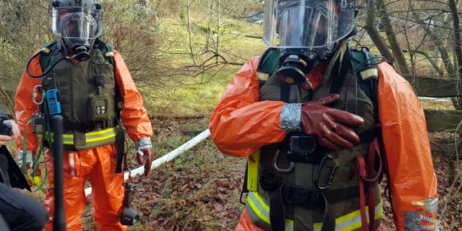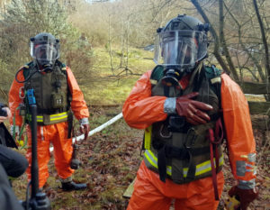 Typowe zadania strażaków-chemików, tym razem w nietypowych warunkach to nowe doświadczenie dla pilskich ratowników.