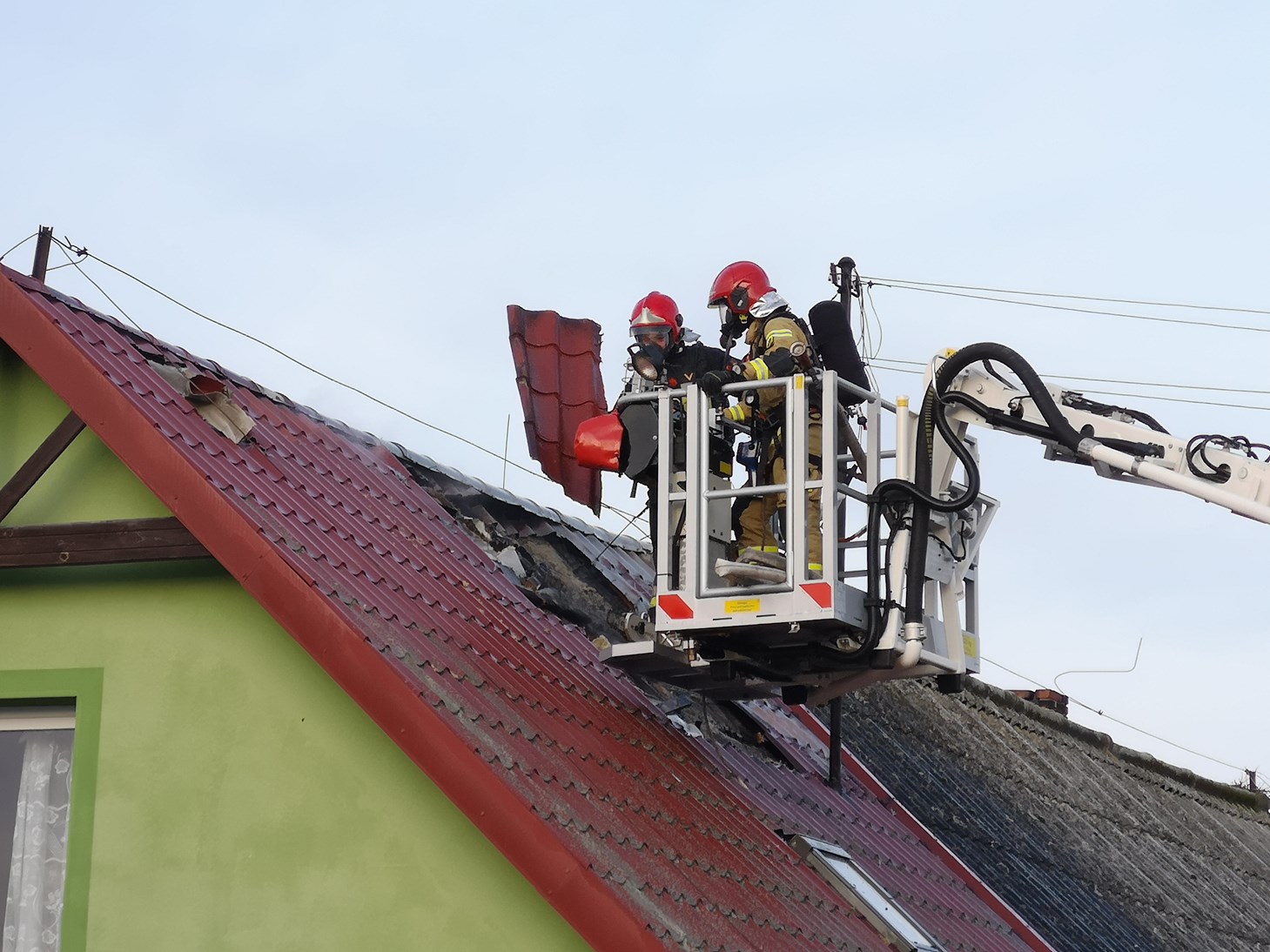 Po przyjeździe na miejsce zdarzenia pierwszej jednostki straży pożarnej stwierdzono, że z kalenicy dachu wydobywa się silne zadymienie. Wszyscy mieszkańcy zdołali ewakuować się nie odnosząc żadnych obrażeń.Działania gaśnicze straży pożarnej prowadzone były równolegle od wewnątrz budynku, bezpośrednio na poddasze oraz z zewnątrz na palący się dach.Strażacy przy wykorzystaniu pił ratowniczych usunęli blaszane pokrycie dachowe oraz cześć palącej się drewnianej konstrukcji dachowej. Po ugaszeniu pożaru dach zabezpieczono plandeką.