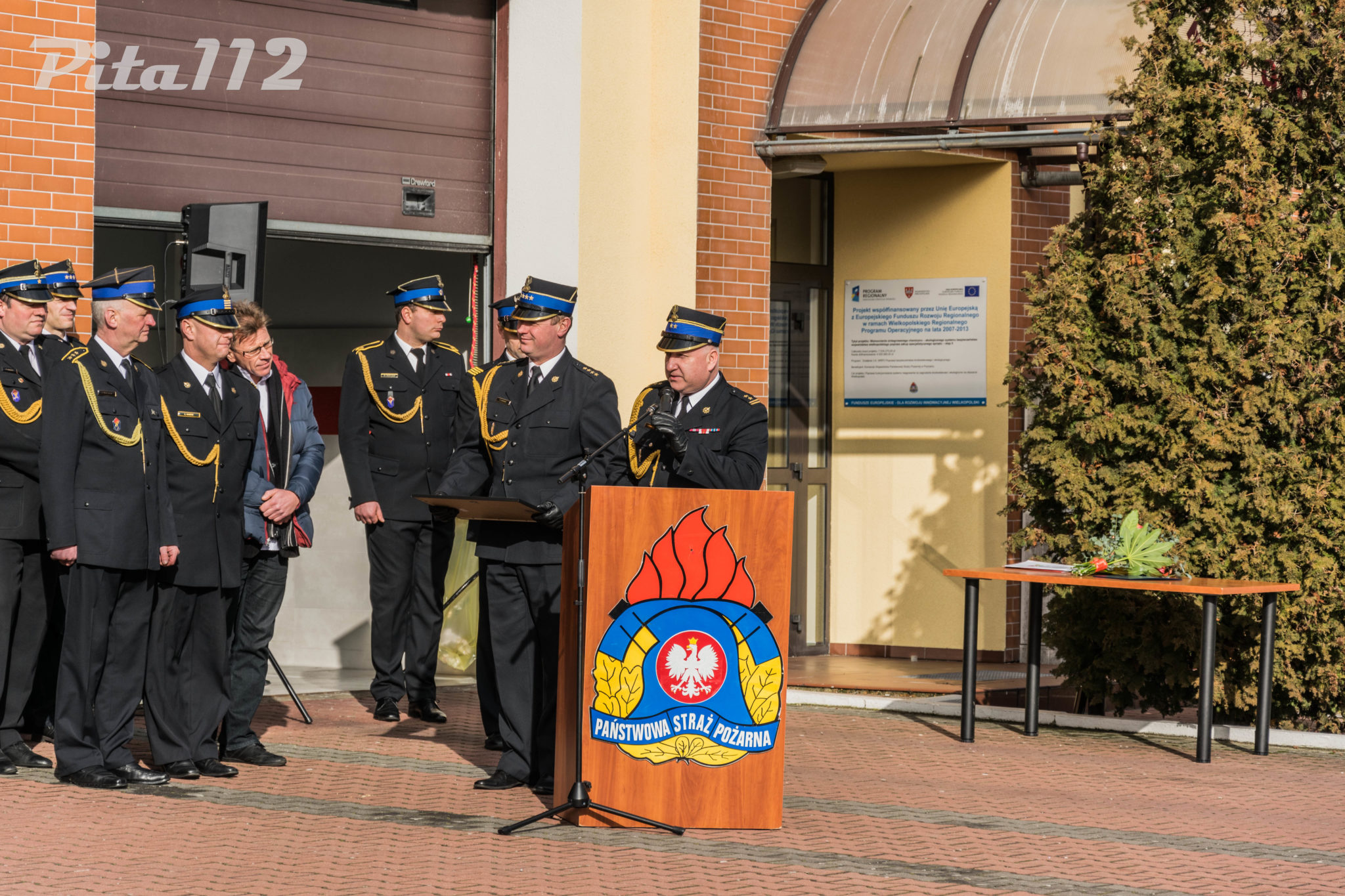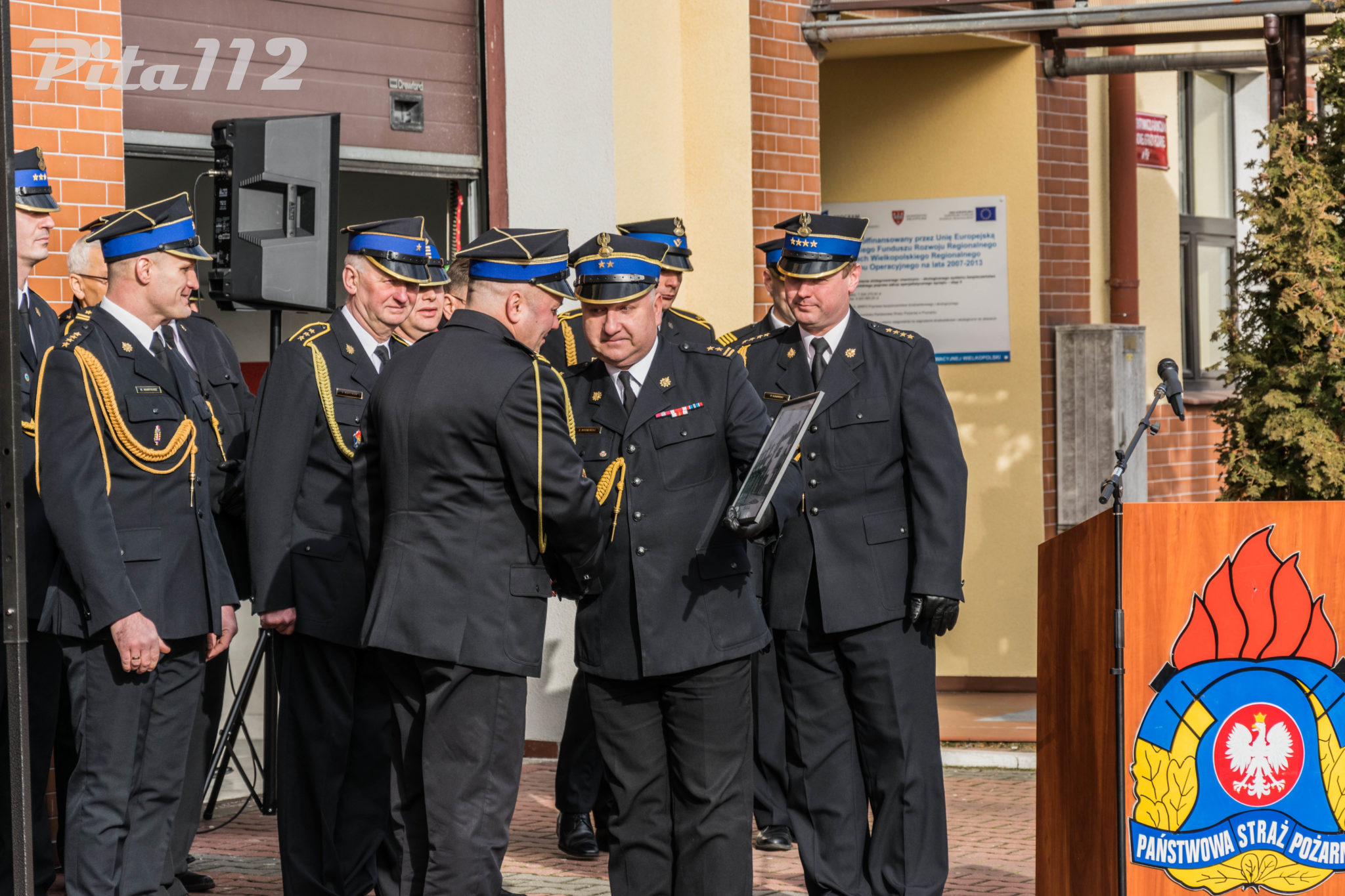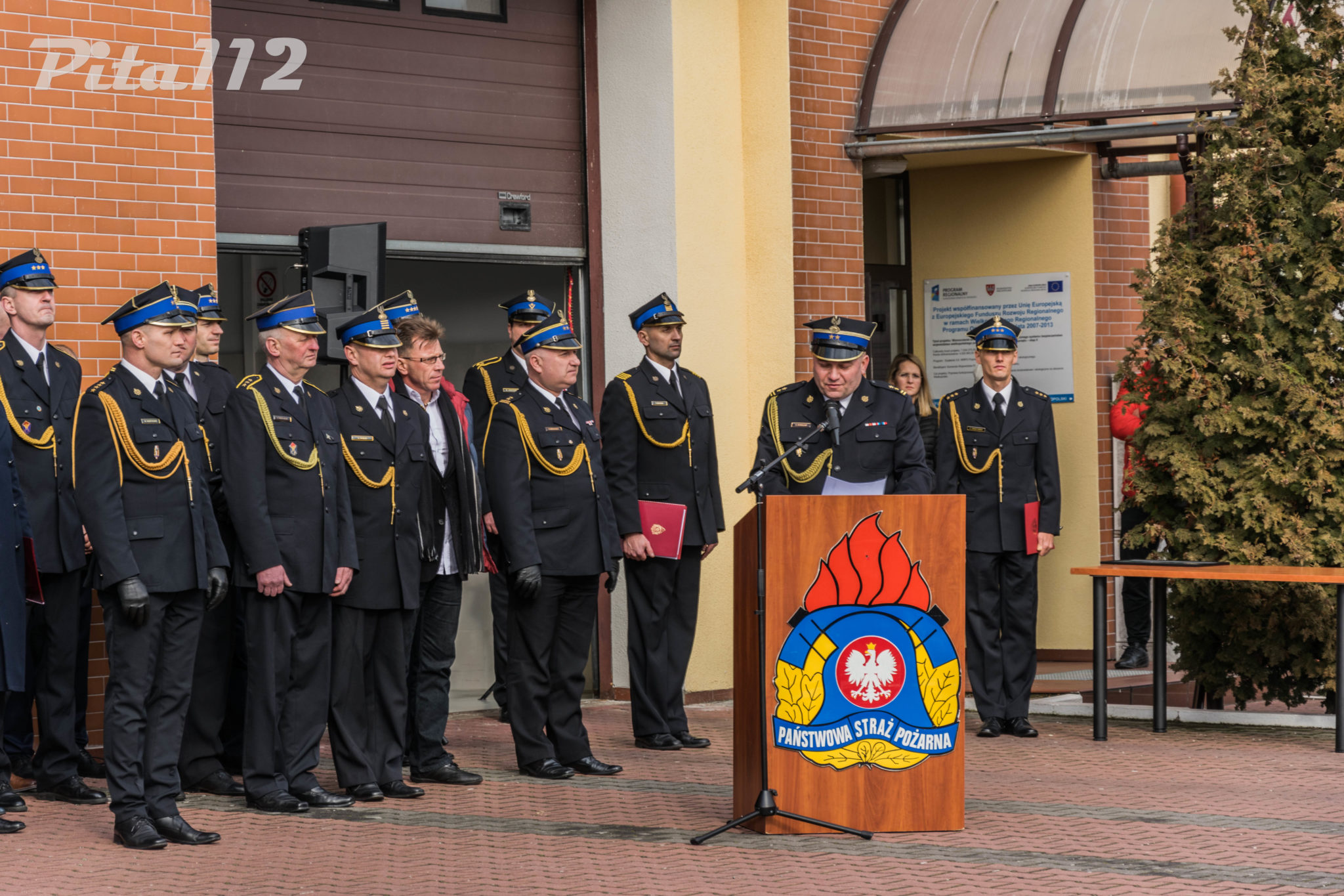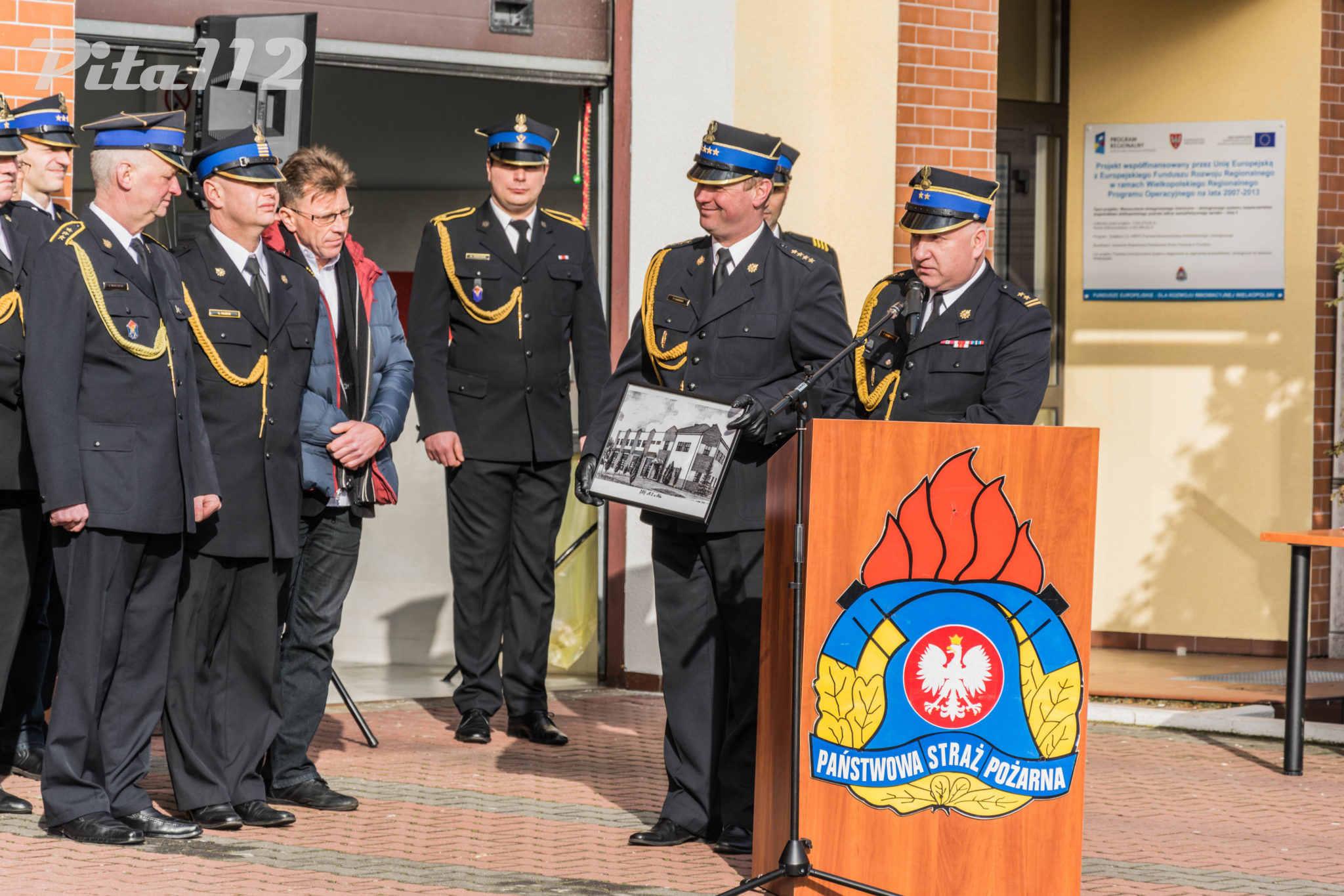 Następnie o zabranie głosu poproszono zaproszonych gości m. in. zastępcę starosty Pilskiego Pana Arkadiusz Kubicha, Prezydenta Miasta Piły Pana Piotra Głowskiego, Zastępcę naczelnika Wydziału Operacyjnego KW PSP st. kpt Paweł Klecha, prezesa Zarządu Oddziału Powiatowego ZOSP RP dh. Krzysztofa Fojta. Następnie wręczono przez Komendanta Powiatowego PSP w Pile oraz jego zastępcę pamiątkowego zdjęcia JRG 2 w Pile brygadierowi Zbigniewowi Szukajle. Po wyprowadzeniu sztandaru zakończono część oficjalną uroczystości.