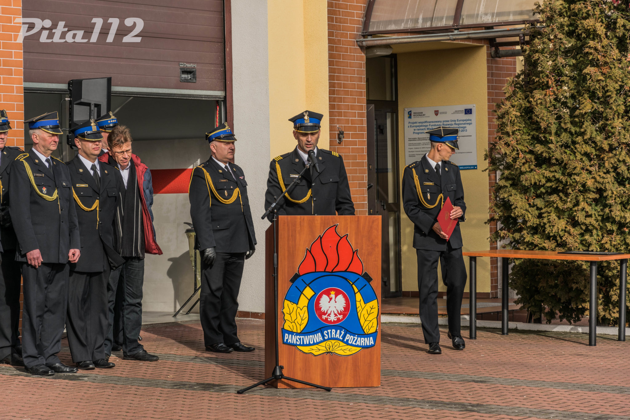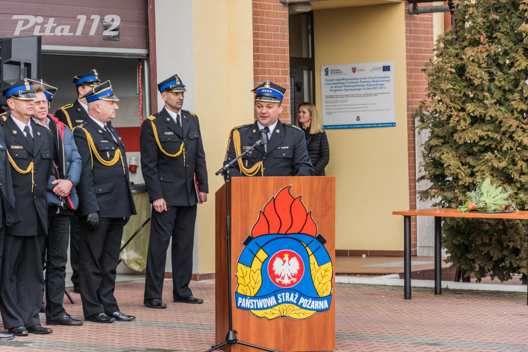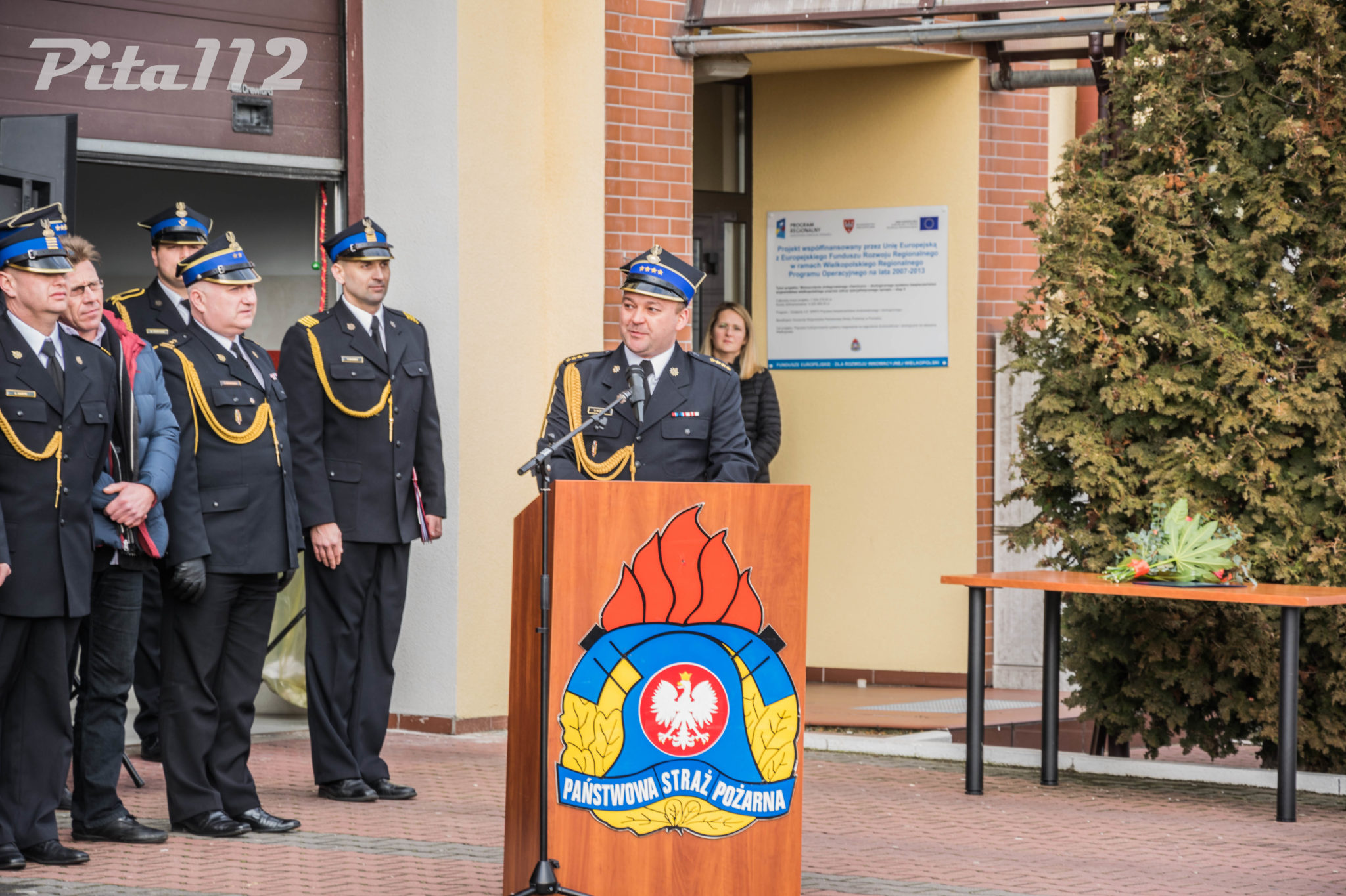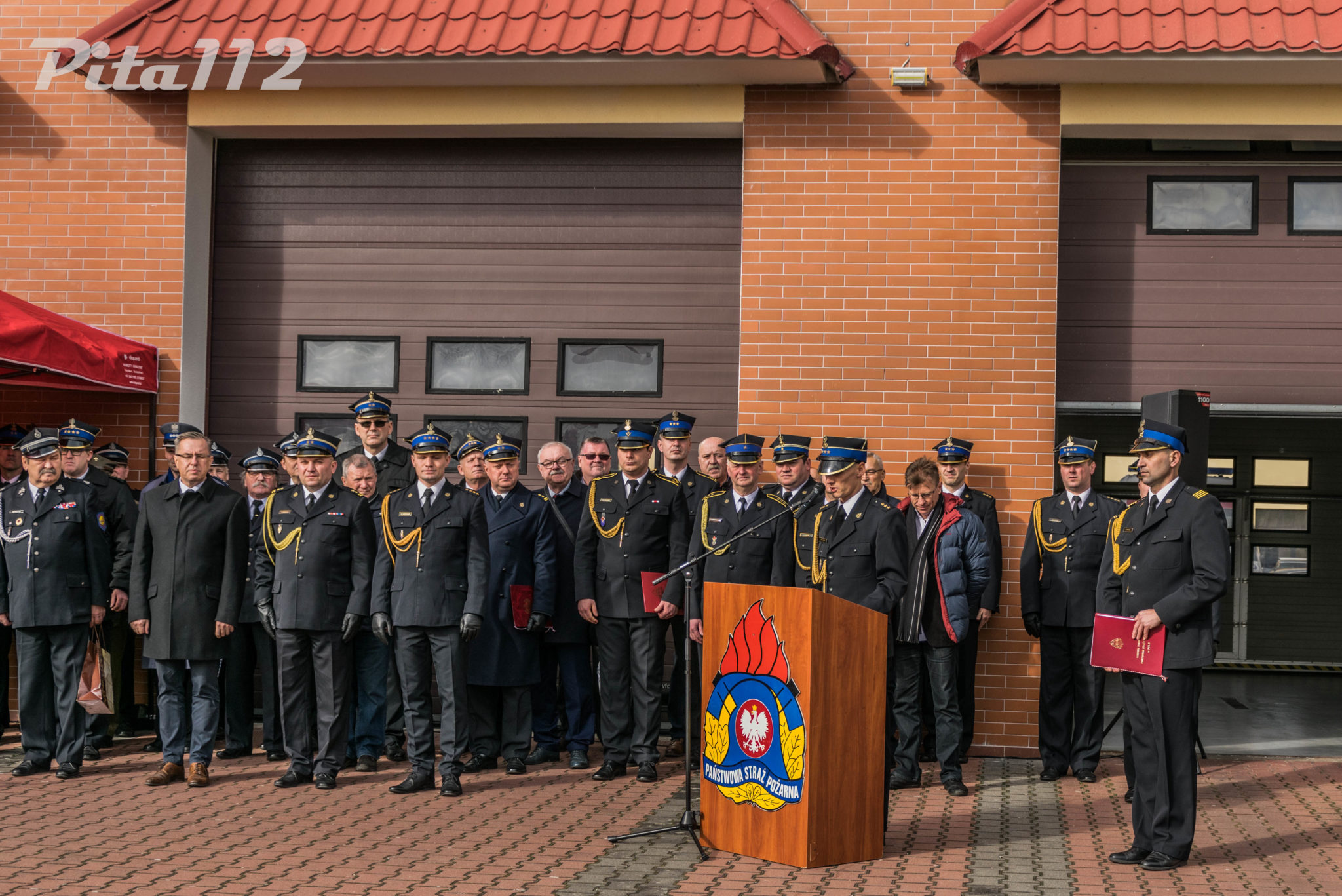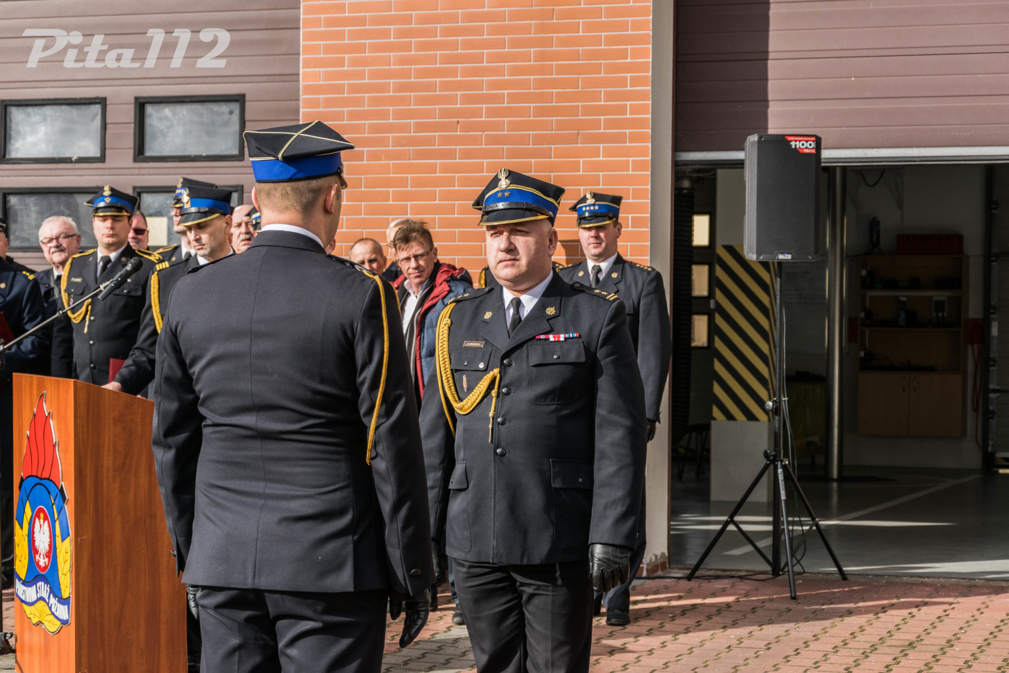 Następnie o zabranie głosu poproszono zaproszonych gości m. in. zastępcę starosty Pilskiego Pana Arkadiusz Kubicha, Prezydenta Miasta Piły Pana Piotra Głowskiego, Zastępcę naczelnika Wydziału Operacyjnego KW PSP st. kpt Paweł Klecha, prezesa Zarządu Oddziału Powiatowego ZOSP RP dh. Krzysztofa Fojta. Następnie wręczono przez Komendanta Powiatowego PSP w Pile oraz jego zastępcę pamiątkowego zdjęcia JRG 2 w Pile brygadierowi Zbigniewowi Szukajle. Po wyprowadzeniu sztandaru zakończono część oficjalną uroczystości.
