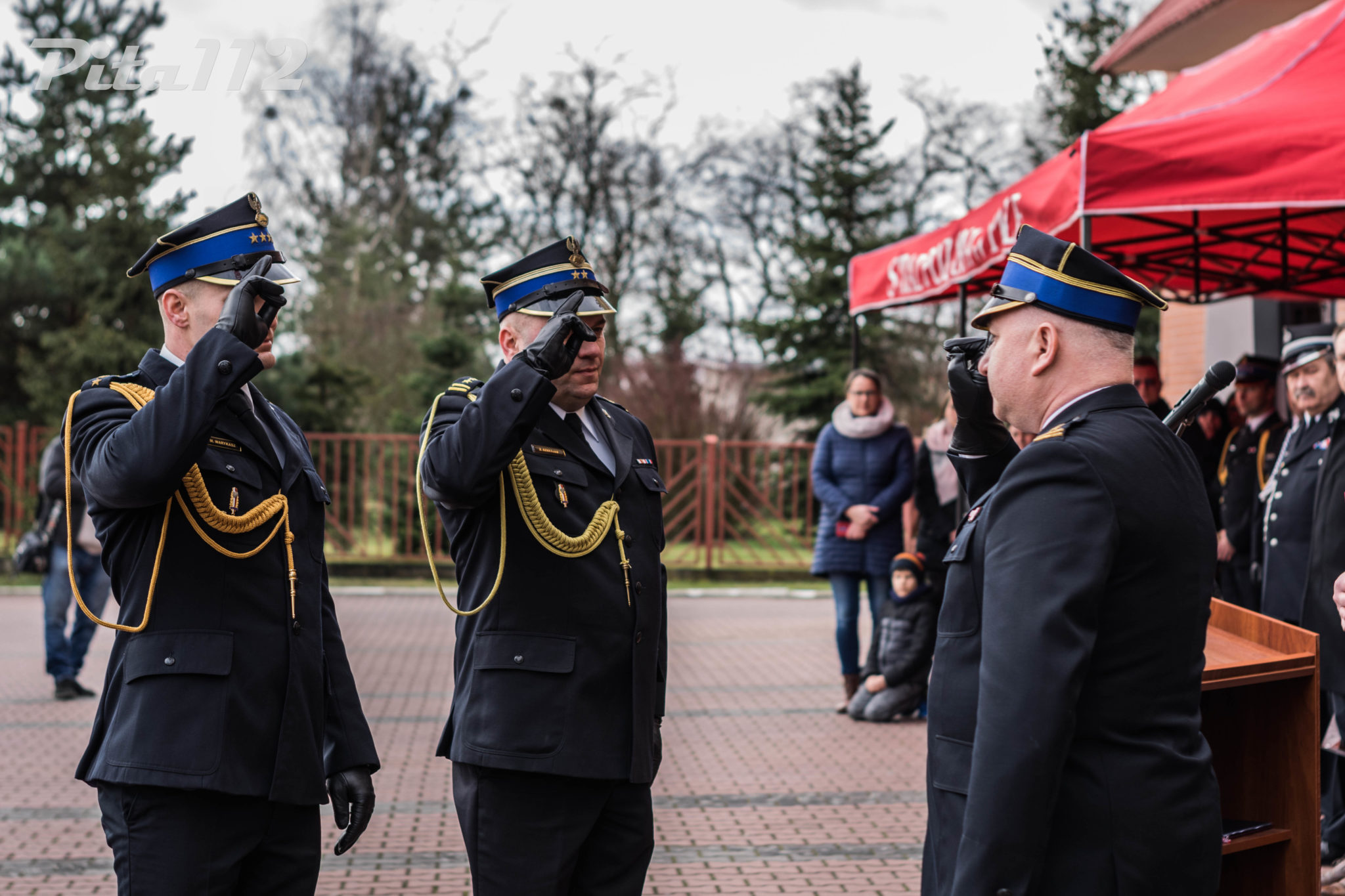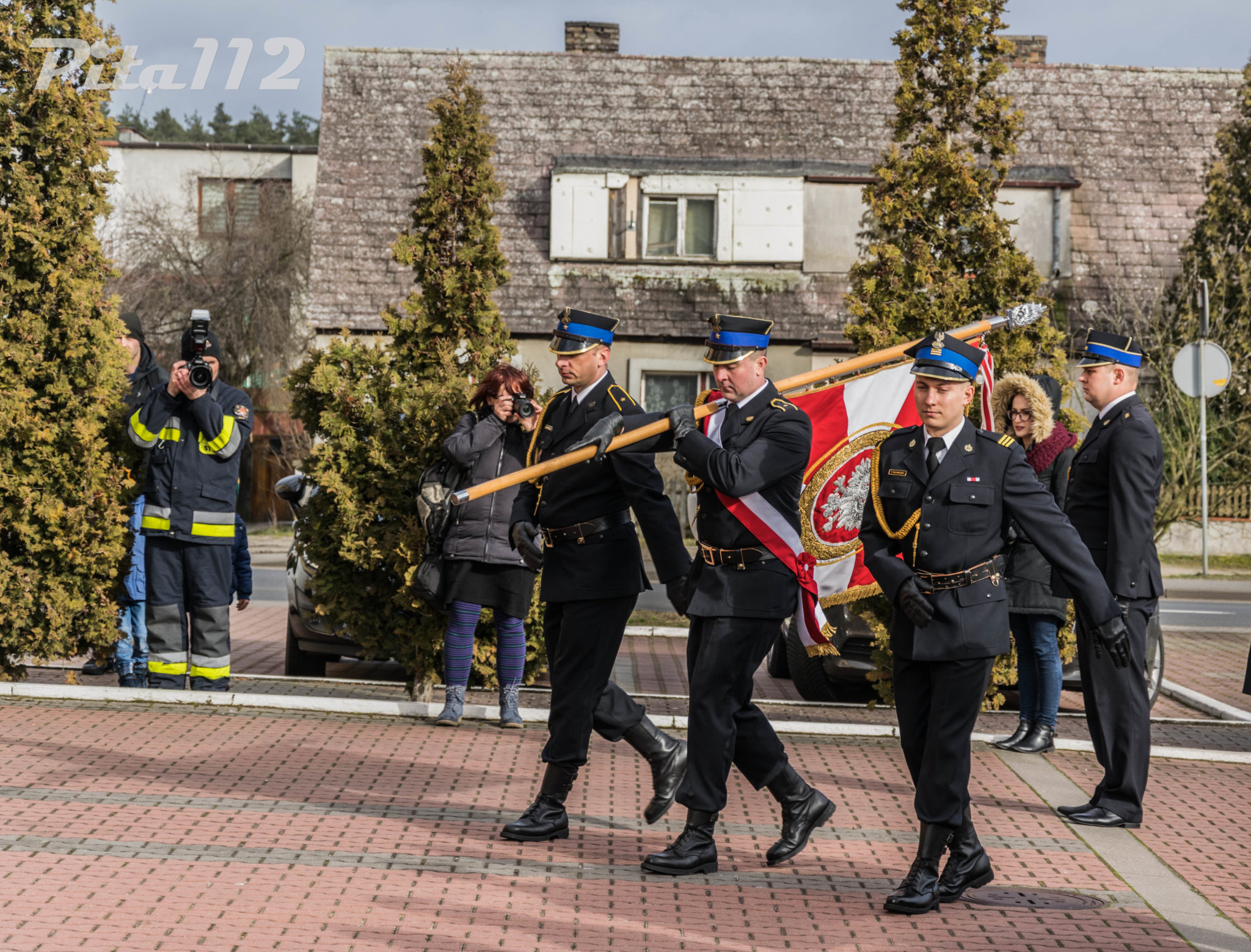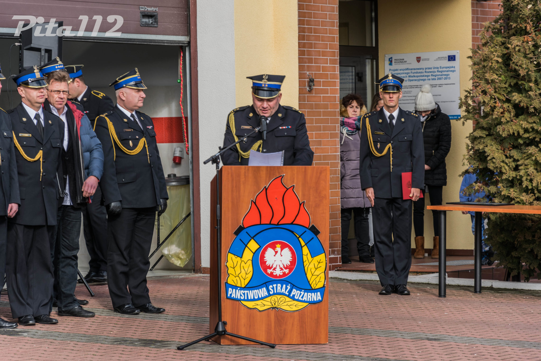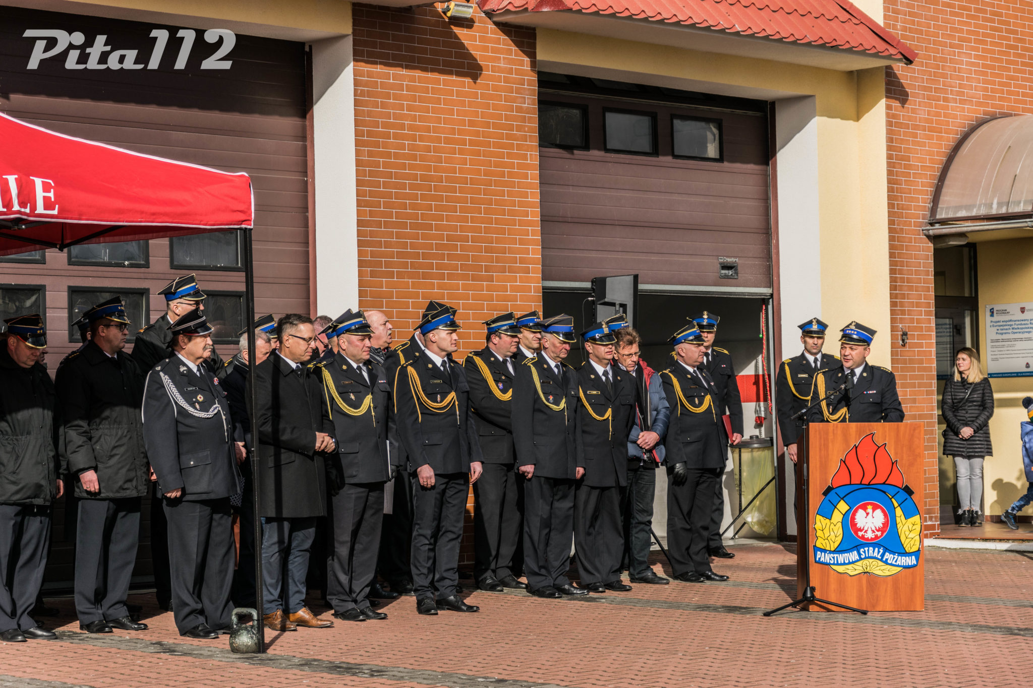 Następnie o zabranie głosu poproszono zaproszonych gości m. in. zastępcę starosty Pilskiego Pana Arkadiusz Kubicha, Prezydenta Miasta Piły Pana Piotra Głowskiego, Zastępcę naczelnika Wydziału Operacyjnego KW PSP st. kpt Paweł Klecha, prezesa Zarządu Oddziału Powiatowego ZOSP RP dh. Krzysztofa Fojta. Następnie wręczono przez Komendanta Powiatowego PSP w Pile oraz jego zastępcę pamiątkowego zdjęcia JRG 2 w Pile brygadierowi Zbigniewowi Szukajle. Po wyprowadzeniu sztandaru zakończono część oficjalną uroczystości.