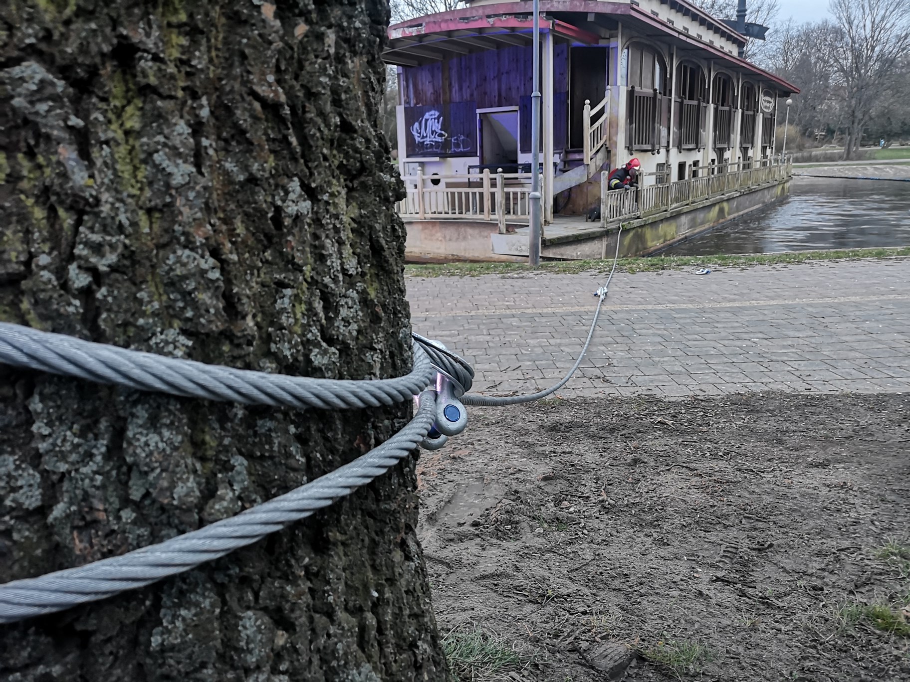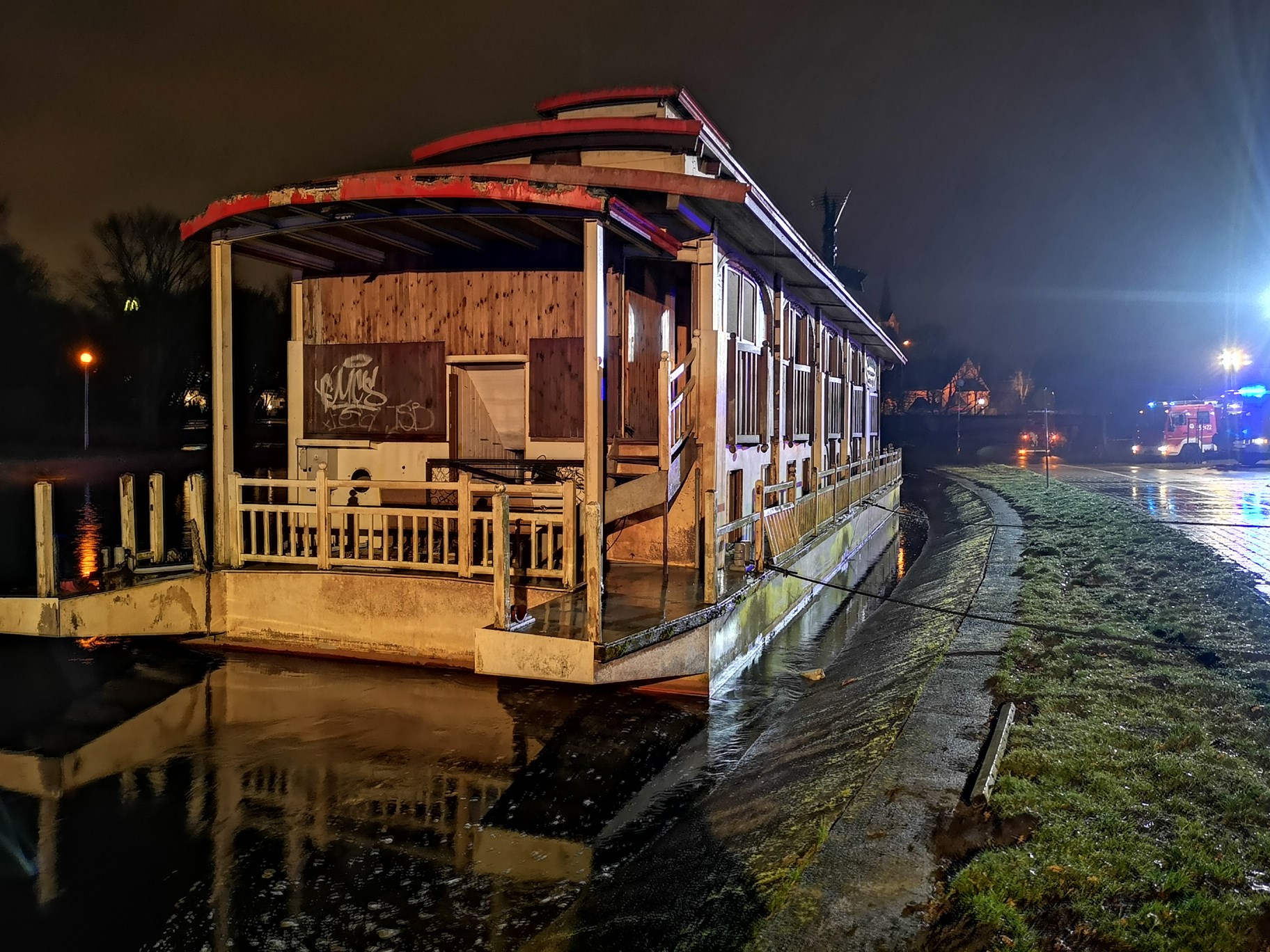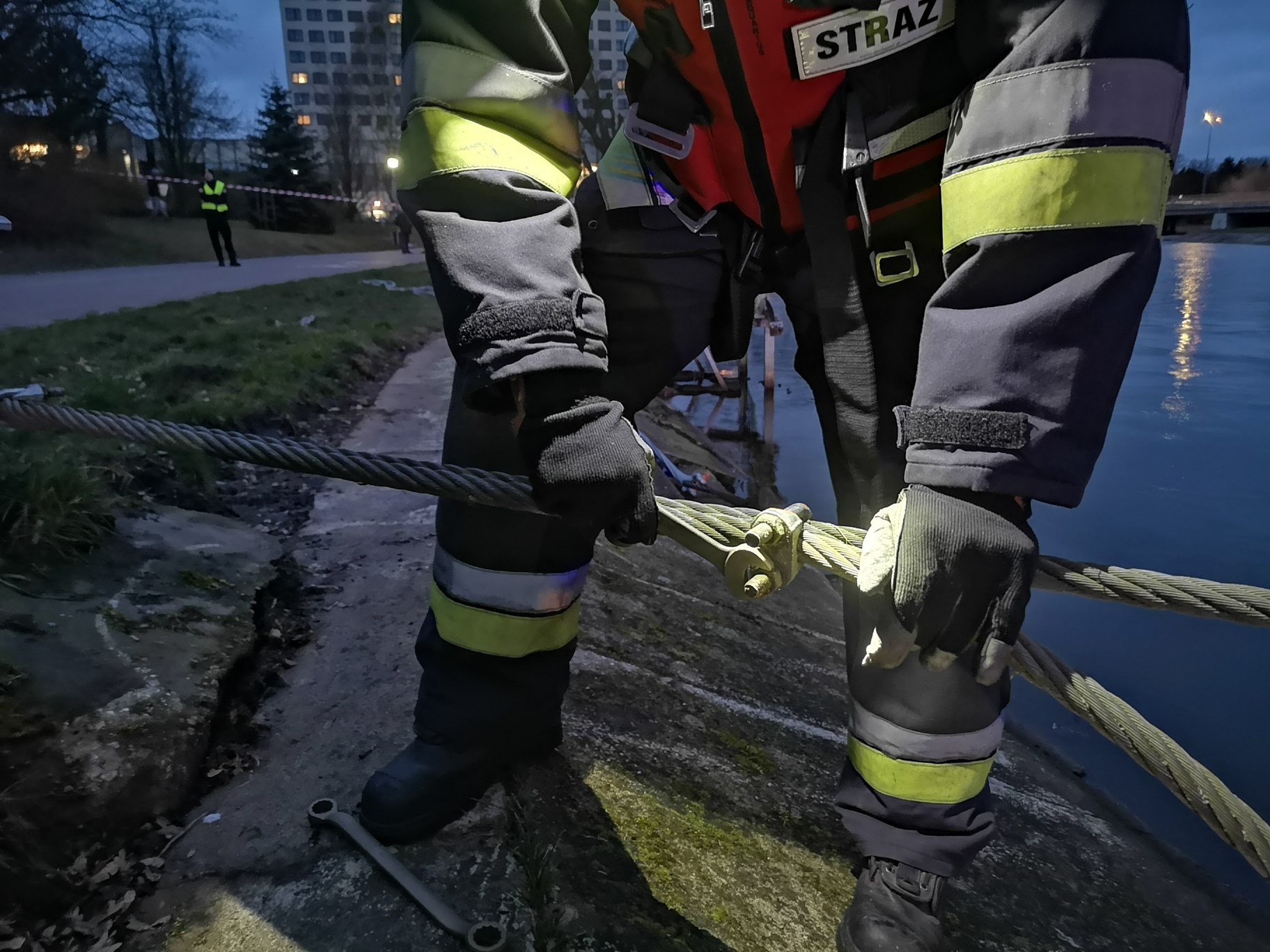 Po przybyciu na miejsce strażacy zastali jednostkę pływającą ustawioną w poprzek rzeki. Barka przycumowana była tylko w jednym punkcie do metalowego słupa, częściowo już wyrwanego.