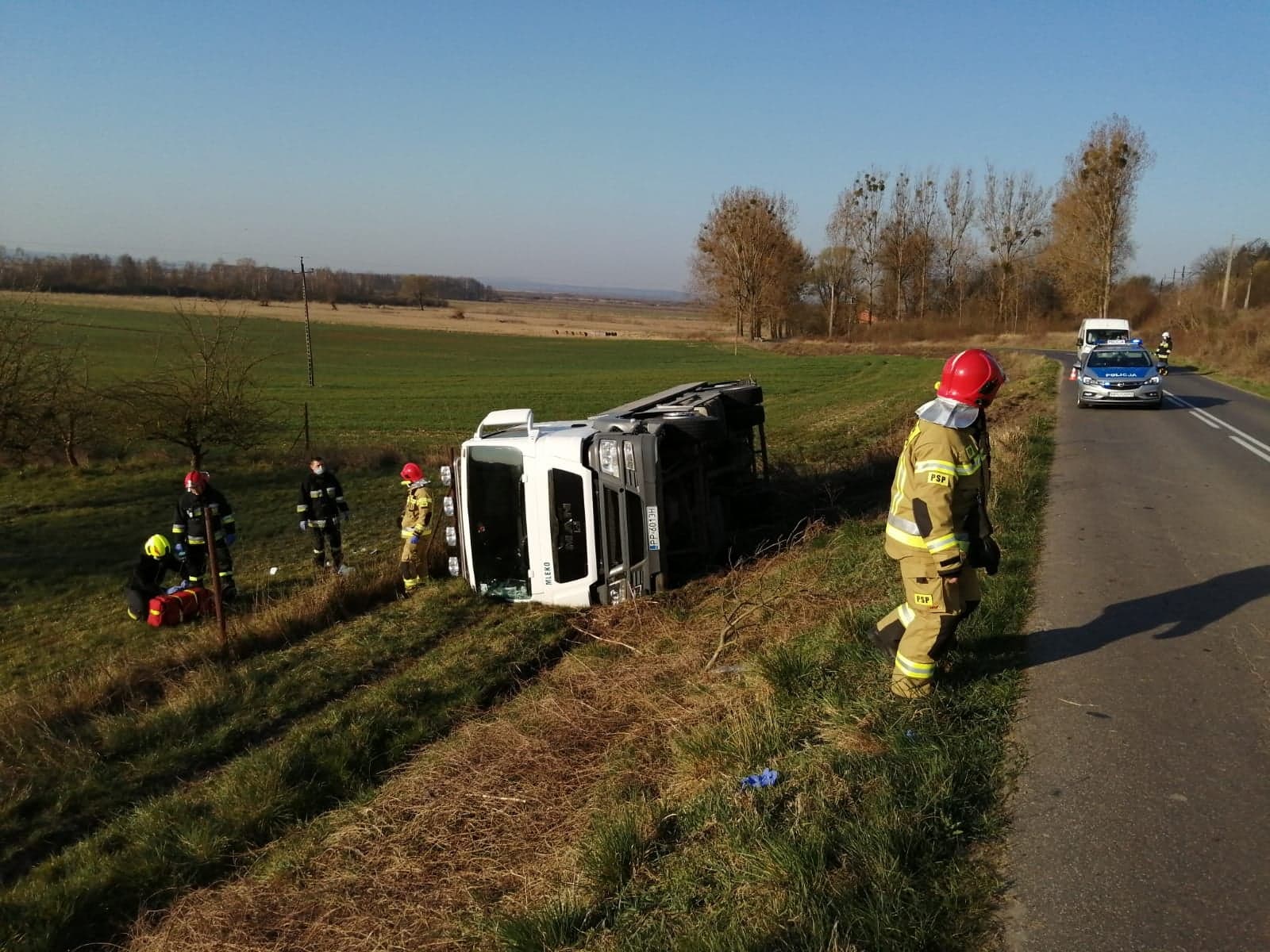 Po dojeździe na miejsce służb ratunkowych zauważono leżący pojazd ciężarowy przewożący mleko. Przy ciężarówce trwała walka o życie prowadzona najpierw przez osoby postronne następnie przez służby ratunkowe. Podczas działań akcja przyniosła oczekiwany skutek i poszkodowanego mężczyznę w wieku 63 lat z przywróconymi czynnościami życiowymi przetransportowano do Szpitala Specjalistycznego w Pile. Niestety finalnie życia kierującego nie udało się uratować – zmarł w szpitalu.