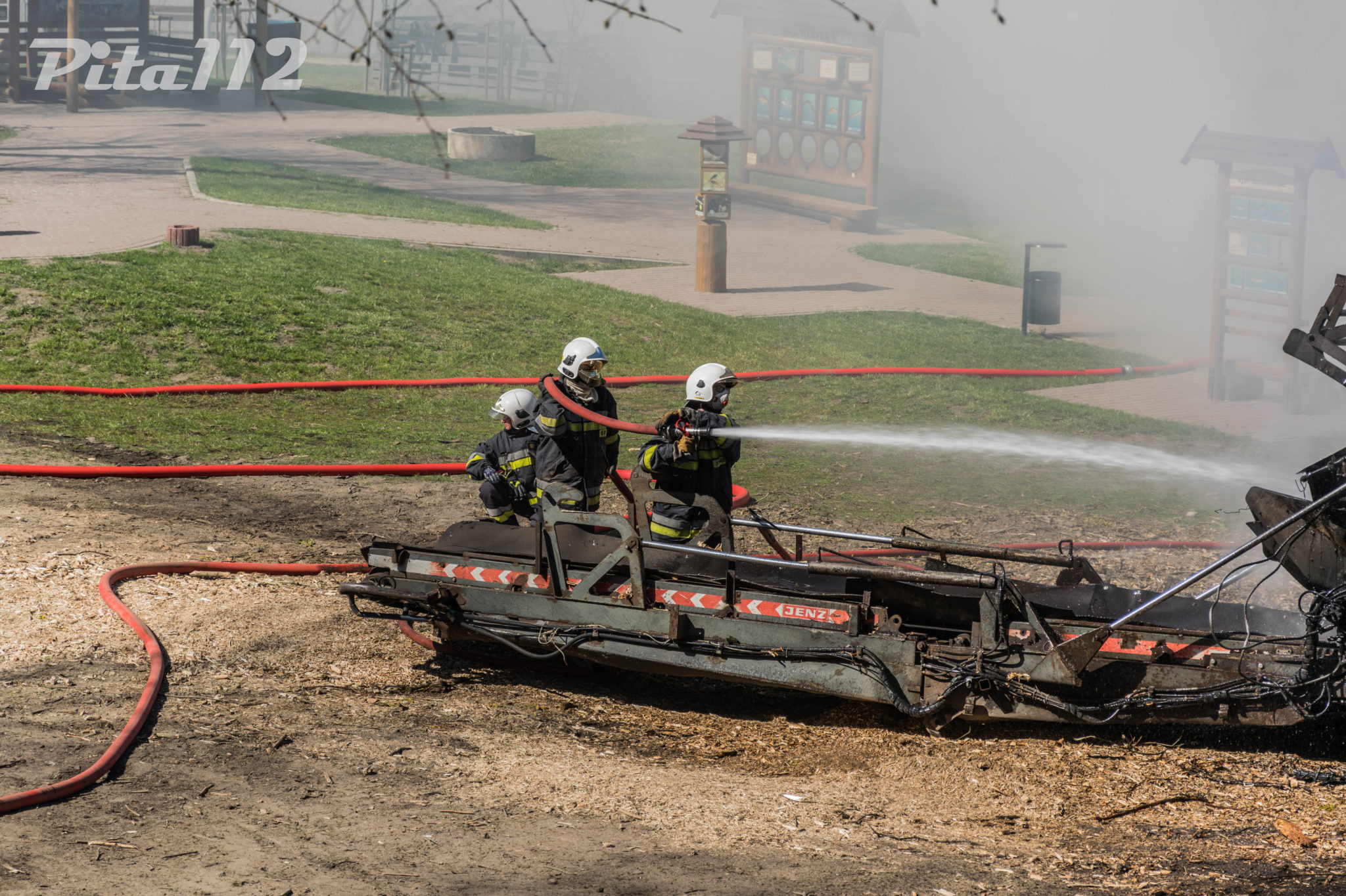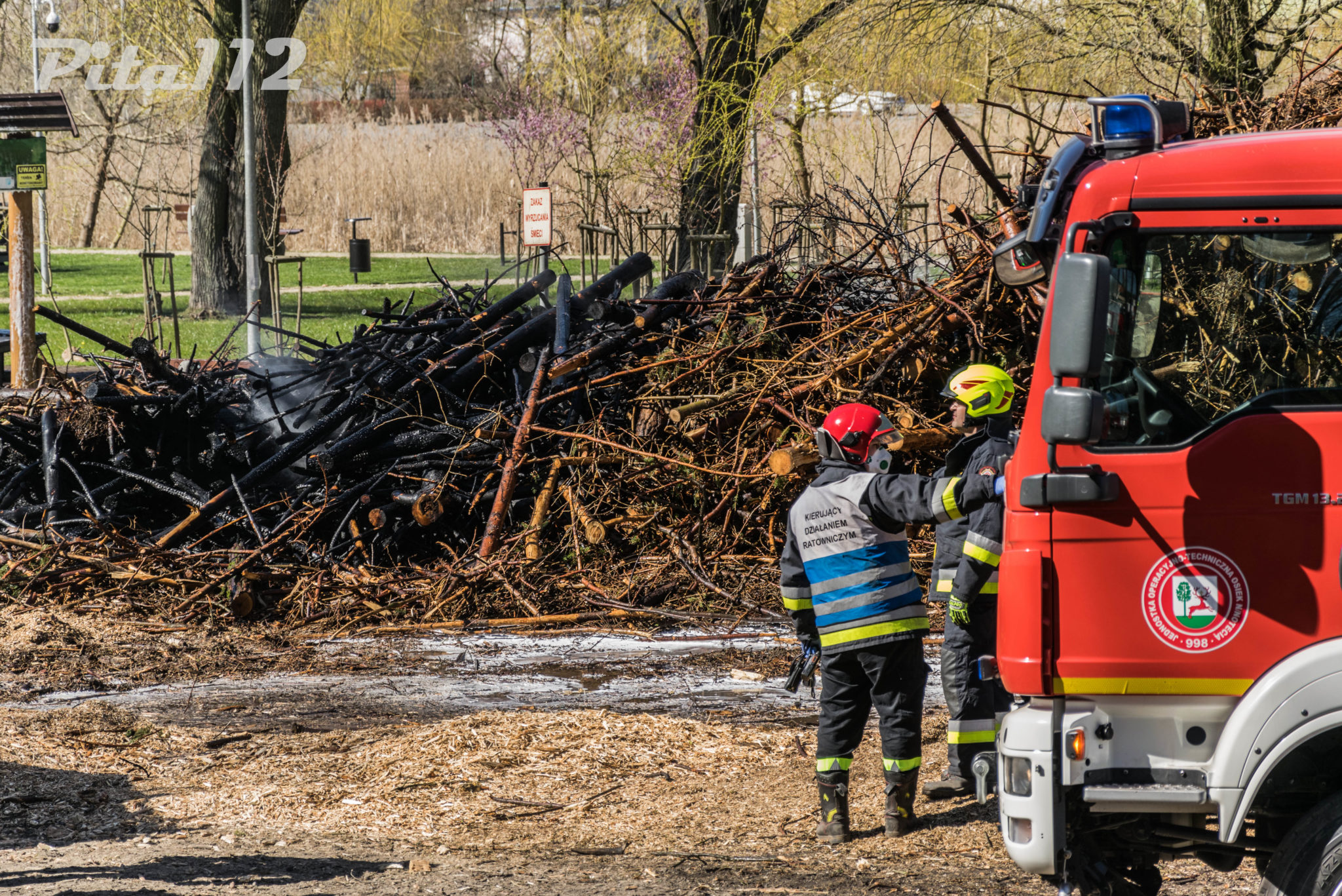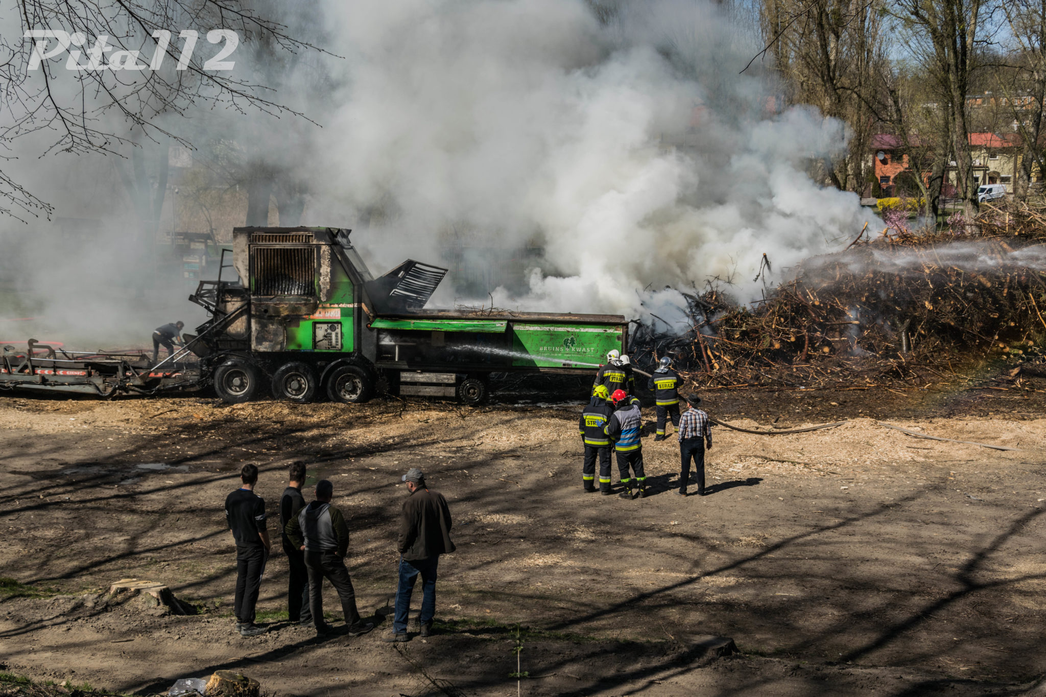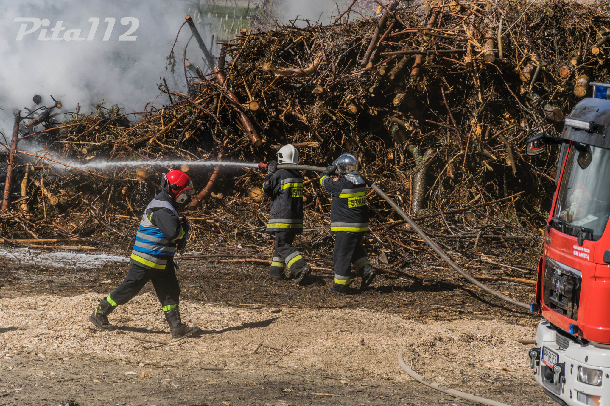Na miejsce Dyżurny SKKP PSP w Pile zadysponował po dwa zastępy z OSP Wyrzysk oraz OSP Osiek Nad Notecią i Oficera Operacyjnego z JRG 2 w Pile. Przybyłe na miejsce pożaru zastępy po zabezpieczeniu miejsca zdarzenia, przystąpiły do budowy linii gaśniczych oraz akcji gaszenia rębaka od którego zajęła się znajdująca się nieopodal sterta gałęzi.