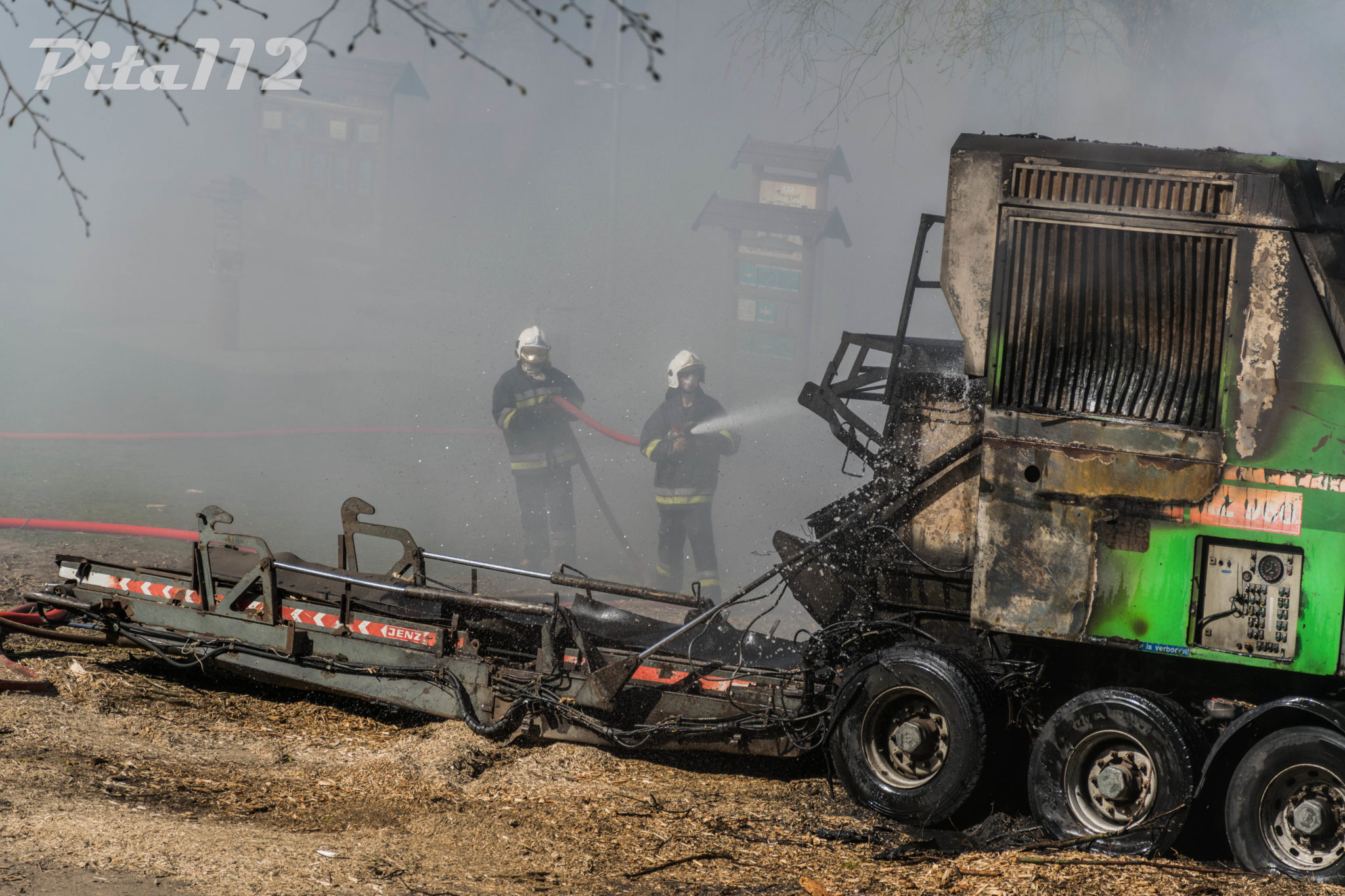 Po opanowaniu pożaru przystąpiono do dogaszania spalonej maszyny oraz przelewaniu wodą spalonych gałęzi. W akcji brało udział 5 zastępów( 2x OSP Wyrzysk, 2x OSP Osiek Nad Notecią, 1x JRG 2 Piła).