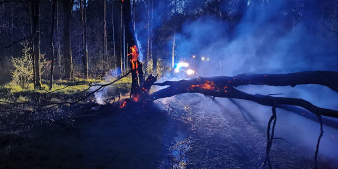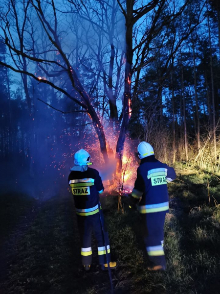 W niedzielę 12-go kwietnia dyżurny w punkcie alarmowo-dyspozycyjnym Lasów Państwowych zauważył dym nad lasem w pobliżu jeziora Piaszczystego koło Piły. We wskazane miejsce natychmiast zadysponowano dwa zastępy gaśnicze. Strażacy szybko ustalili, że doszło do podpalenia, a ogień podłożono w kilku miejscach. Do działań skierowano dodatkowe zastępy straży pożarnej oraz leśników. Wezwano również Policję. W akcji gaśniczej łącznie udział brało 6 zastępów, w tym 32 strażaków.