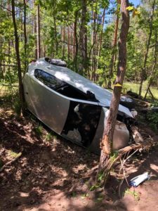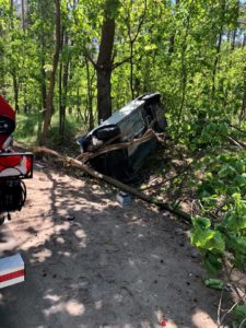 W poniedziałek 1-go czerwca w okolicy miejscowości Zawada (gm. Szydłowo) samochód osobowy, którym podróżowały dwie osoby zjechał z drogi powiatowej i zatrzymał się na poboczu, przewracając się na bok. Kobieta z dzieckiem o własnych siłach opuścili swój pojazd.
