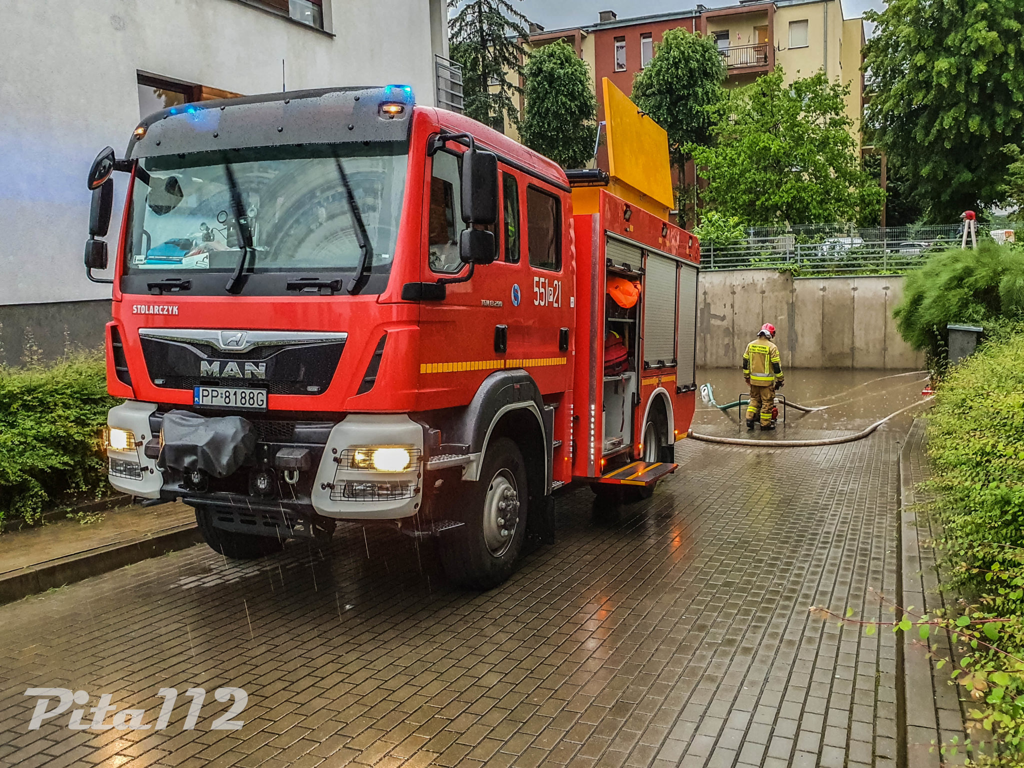 W czwartkowe(18.06.2020) popołudnie po intensywnych opadach deszczu zastępy straży pożarnej odnotowały dokładnie 61 wyjazdów do zdarzeń.