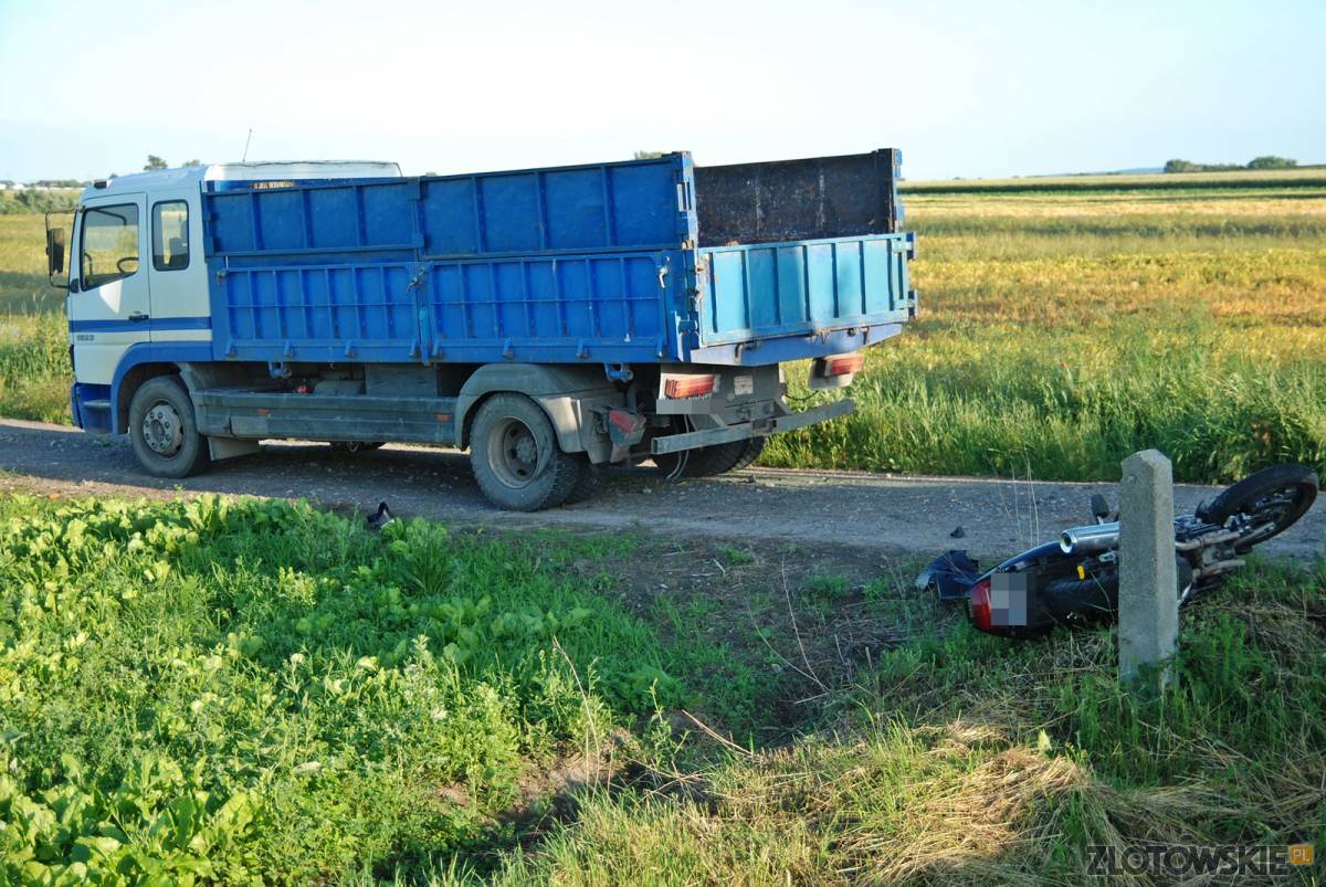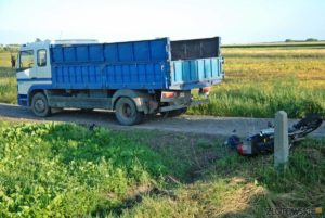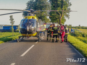 W dniu dzisiejszym 22.06.2020 kilka minut po godzinie 19:00 do SKKP PSP w Pile wpłynęło zgłoszenie o wypadku drogowym na DW242 pomiędzy miejscowościami Łobżenica a Szczerbin gdzie na prostym odcinku drogi doszło do zderzenia motocyklisty z samochodem ciężarowym.